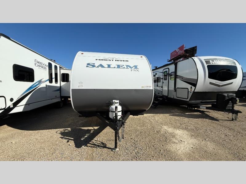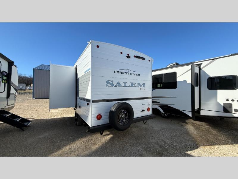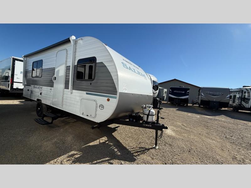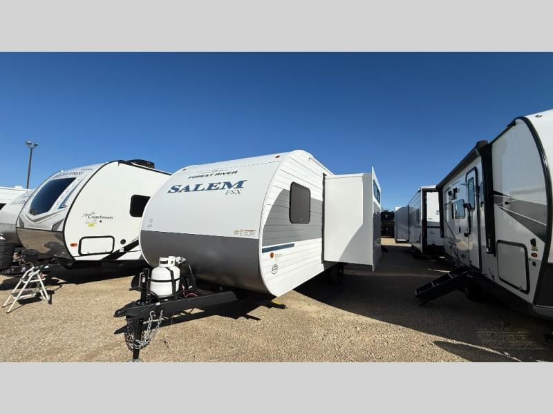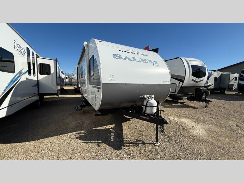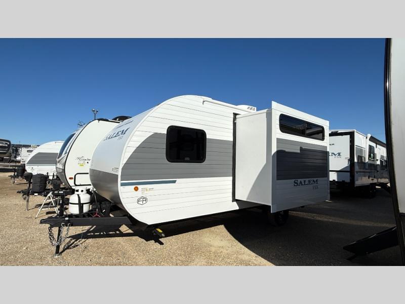 The Forest River Salem FSX travel trailers and toy hauler travel trailers are ultra comfortable and lightweight, perfect for first time or seasoned campers alike! You will love how easy it will be to relax with residential features that will make your space feel just like home, and the durable construction means you can enjoy your RV for years to come. There are a wide variety of floorplans to choose from, including couple's trailers, bunk models, and toy haulers, all with full bath and kitchen amenities and plenty of storage for all your gear!