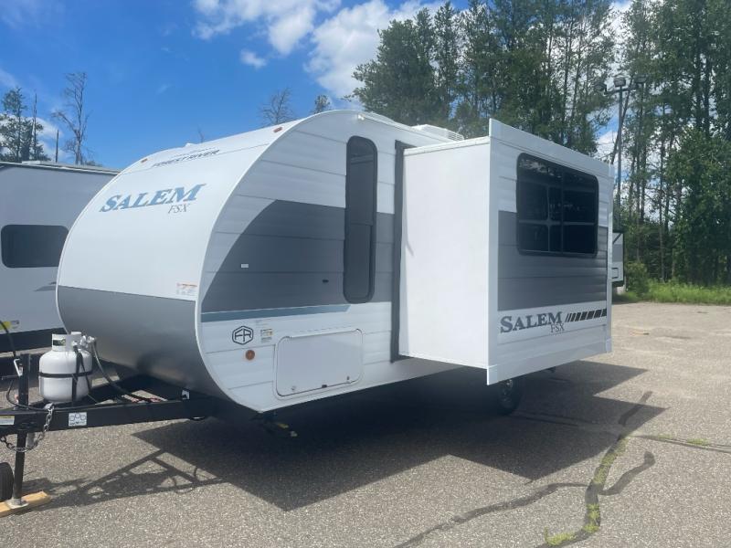 The Forest River Salem FSX travel trailers and toy hauler travel trailers are ultra comfortable and lightweight, perfect for first time or seasoned campers alike! You will love how easy it will be to relax with residential features that will make your space feel just like home, and the durable construction means you can enjoy your RV for years to come. There are a wide variety of floorplans to choose from, including couple's trailers, bunk models, and toy haulers, all with full bath and kitchen amenities and plenty of storage for all your gear!