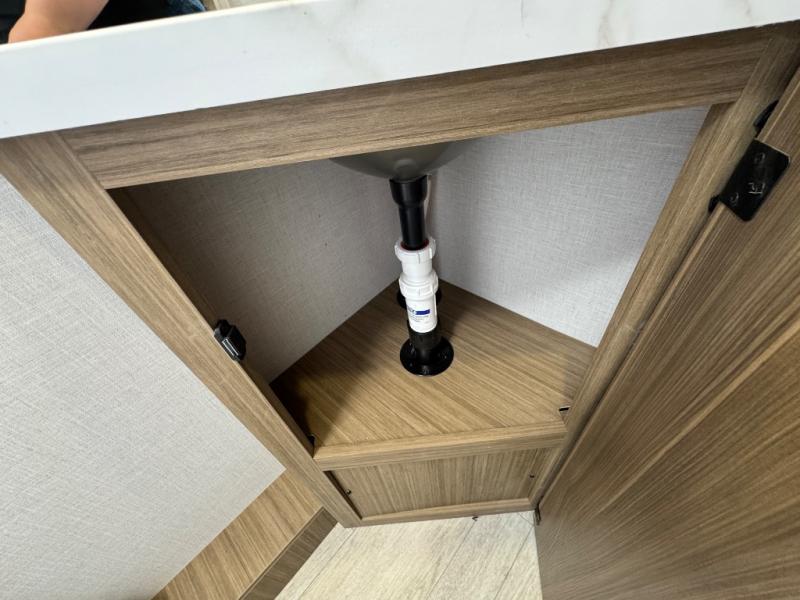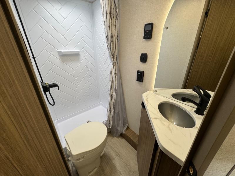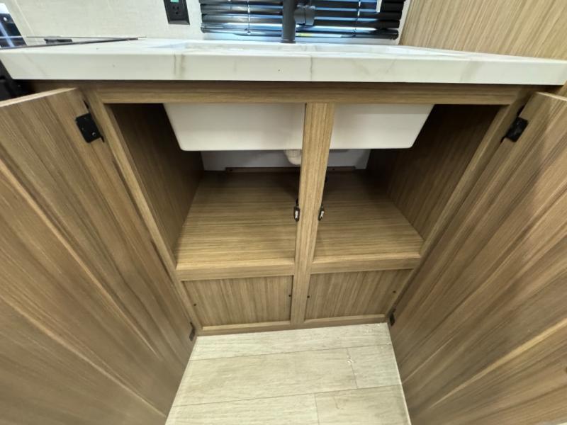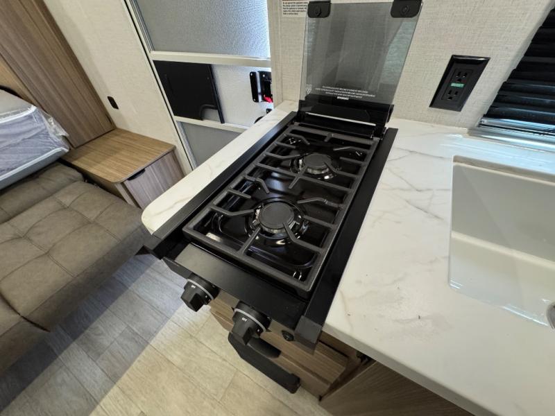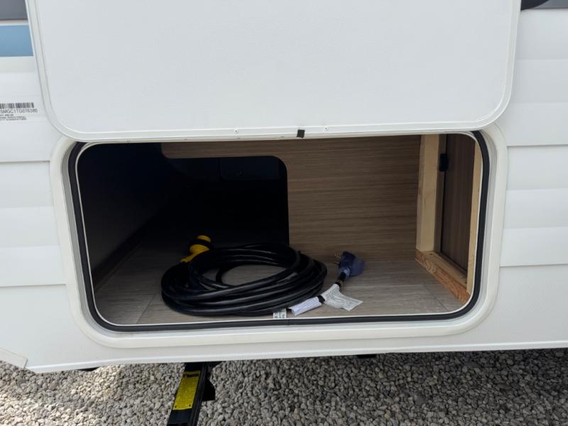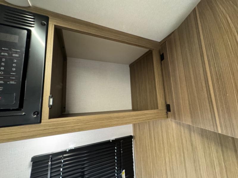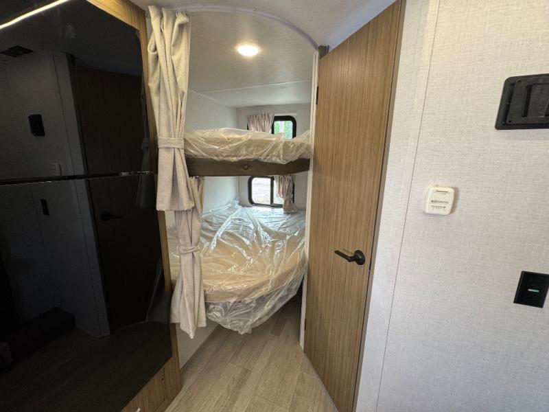Start camping the right way in this travel trailer! It features a front Murphy bed that will double as your seating and sleeping space each day. The corner set of double-size bunk beds come with storage to keep things out of the way and are conveniently next to the rear corner bathroom with a shower with a skylight to freshen up in each morning. You can prepare your best home cooked meals with the two-burner cooktop and store leftovers in the 12V refrigerator. Enjoy your meals, play card games, and even sleep at the U-shaped dinette slide.