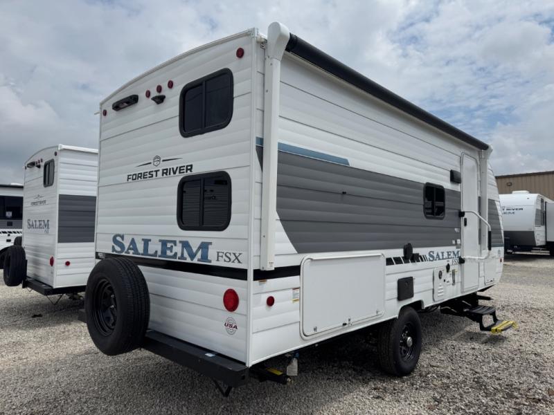 The Forest River Salem FSX travel trailers and toy hauler travel trailers are ultra comfortable and lightweight, perfect for first time or seasoned campers alike! You will love how easy it will be to relax with residential features that will make your space feel just like home, and the durable construction means you can enjoy your RV for years to come. There are a wide variety of floorplans to choose from, including couple's trailers, bunk models, and toy haulers, all with full bath and kitchen amenities and plenty of storage for all your gear!