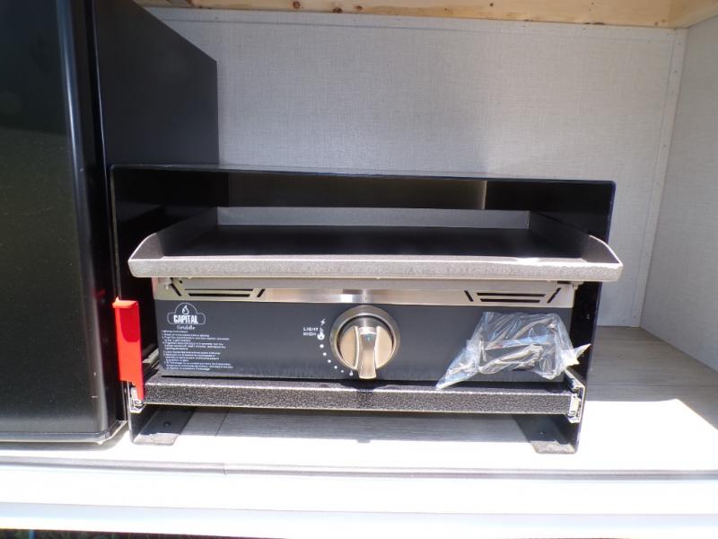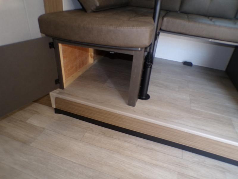 Start camping the right way in this travel trailer! It features a front Murphy bed that will double as your seating and sleeping space each day. The corner set of double-size bunk beds come with storage to keep things out of the way and are conveniently next to the rear corner bathroom with a shower with a skylight to freshen up in each morning. You can prepare your best home cooked meals indoors with the two burner cooktop or head to the outside kitchen to fry up some burgers while breathing in some fresh air. Enjoy your meals, play card games, and even sleep at the U-shaped dinette slide. You will also appreciate the outside shower and the exterior full pass-through storage for camp gear!