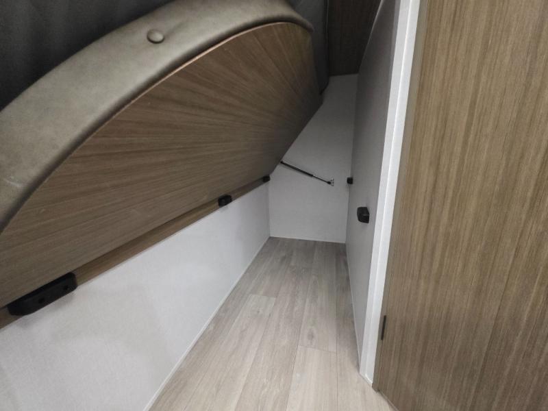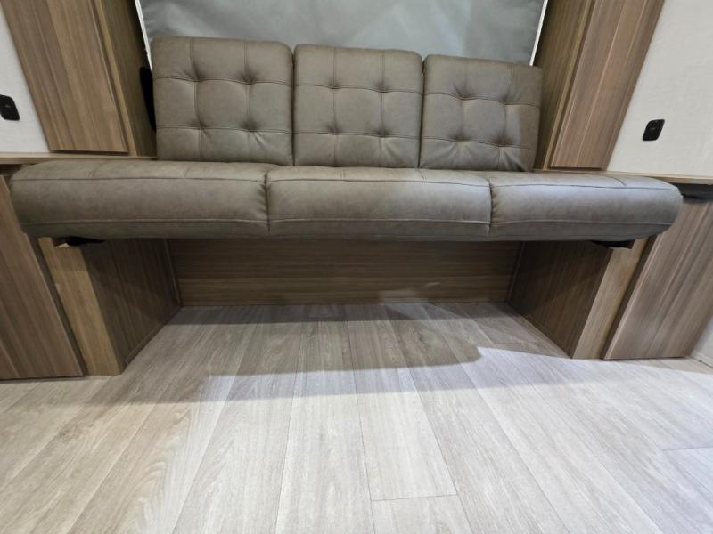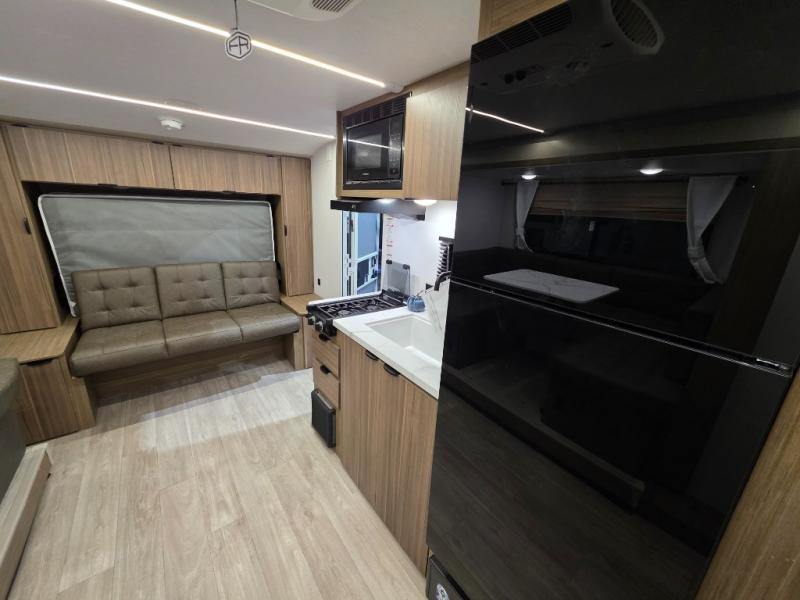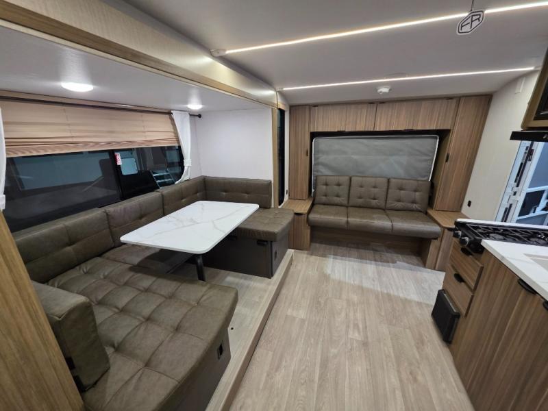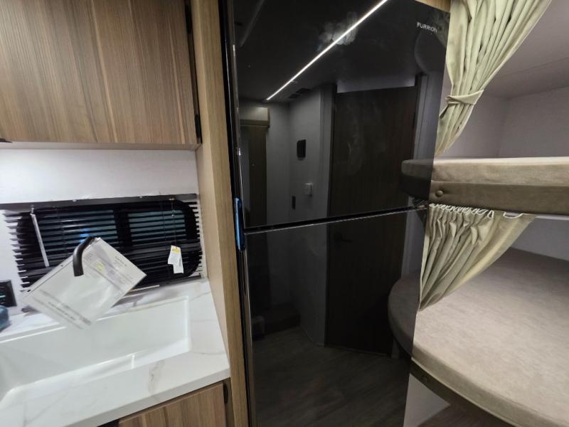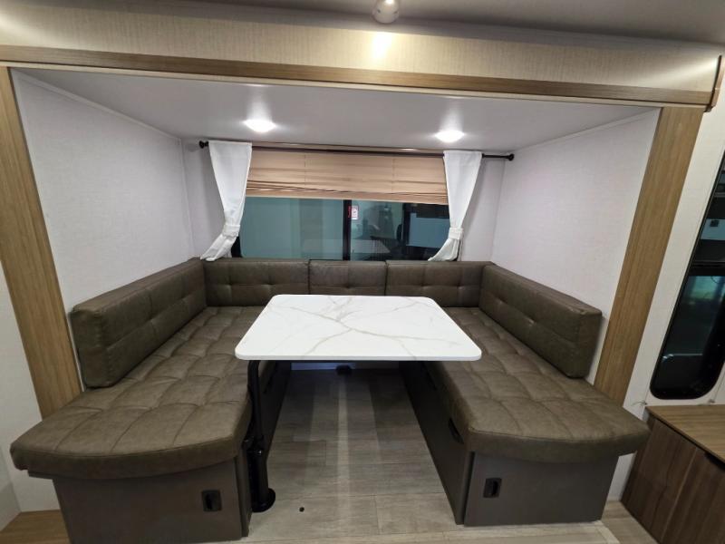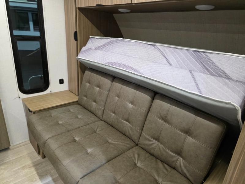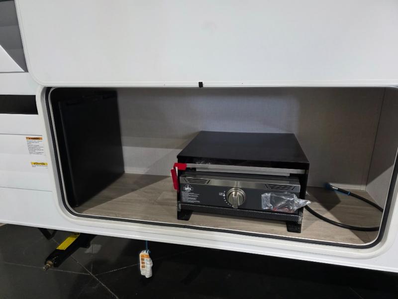 Start camping the right way in this travel trailer! It features a front Murphy bed that will double as your seating and sleeping space each day. The corner set of double-size bunk beds come with storage to keep things out of the way and are conveniently next to the rear corner bathroom with a shower with a skylight to freshen up in each morning. You can prepare your best home cooked meals indoors with the two burner cooktop or head to the outside kitchen to fry up some burgers while breathing in some fresh air. Enjoy your meals, play card games, and even sleep at the U-shaped dinette slide. You will also appreciate the outside shower and the exterior full pass-through storage for camp gear!