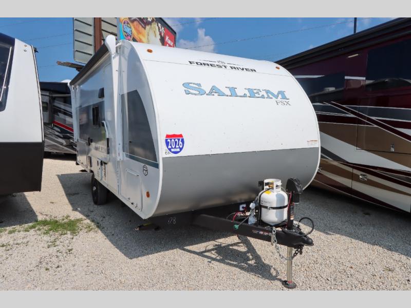 The Forest River Salem FSX travel trailers and toy hauler travel trailers are ultra comfortable and lightweight, perfect for first time or seasoned campers alike! You will love how easy it will be to relax with residential features that will make your space feel just like home, and the durable construction and easy to maintain fiberglass exterior means you can enjoy your RV for years to come. There are a wide variety of floorplans to choose from, including couple's trailers, bunk models, and toy haulers, all with full bath and kitchen amenities and plenty of storage for all your gear!