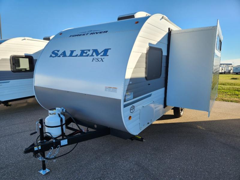 The Forest River Salem FSX travel trailers and toy hauler travel trailers are ultra comfortable and lightweight, perfect for first time or seasoned campers alike! You will love how easy it will be to relax with residential features that will make your space feel just like home, and the durable construction means you can enjoy your RV for years to come. There are a wide variety of floorplans to choose from, including couple's trailers, bunk models, and toy haulers, all with full bath and kitchen amenities and plenty of storage for all your gear!
