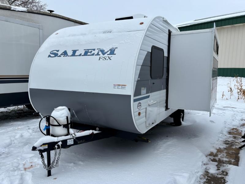 The Forest River Salem FSX travel trailers and toy hauler travel trailers are ultra comfortable and lightweight, perfect for first time or seasoned campers alike! You will love how easy it will be to relax with residential features that will make your space feel just like home, and the durable construction means you can enjoy your RV for years to come. There are a wide variety of floorplans to choose from, including couple's trailers, bunk models, and toy haulers, all with full bath and kitchen amenities and plenty of storage for all your gear!