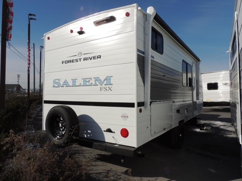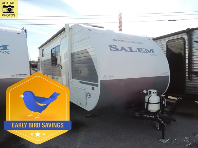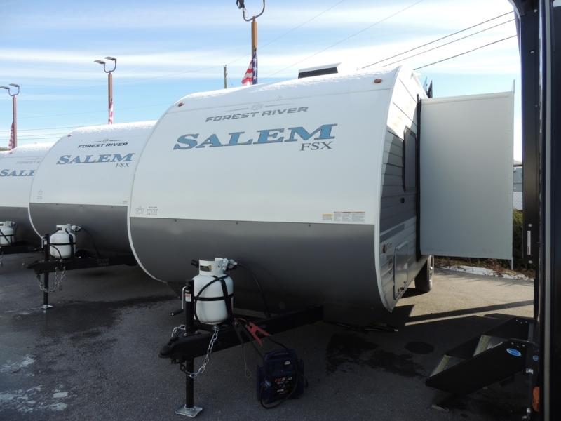 The Forest River Salem FSX travel trailers and toy hauler travel trailers are ultra comfortable and lightweight, perfect for first time or seasoned campers alike! You will love how easy it will be to relax with residential features that will make your space feel just like home, and the durable construction means you can enjoy your RV for years to come. There are a wide variety of floorplans to choose from, including couple's trailers, bunk models, and toy haulers, all with full bath and kitchen amenities and plenty of storage for all your gear!