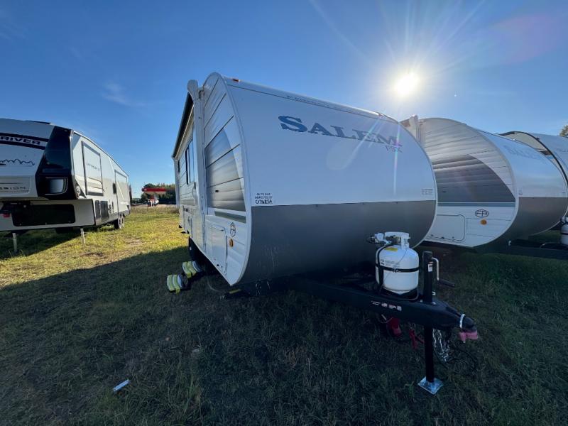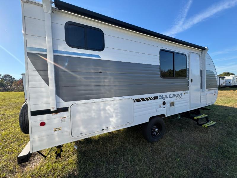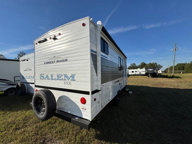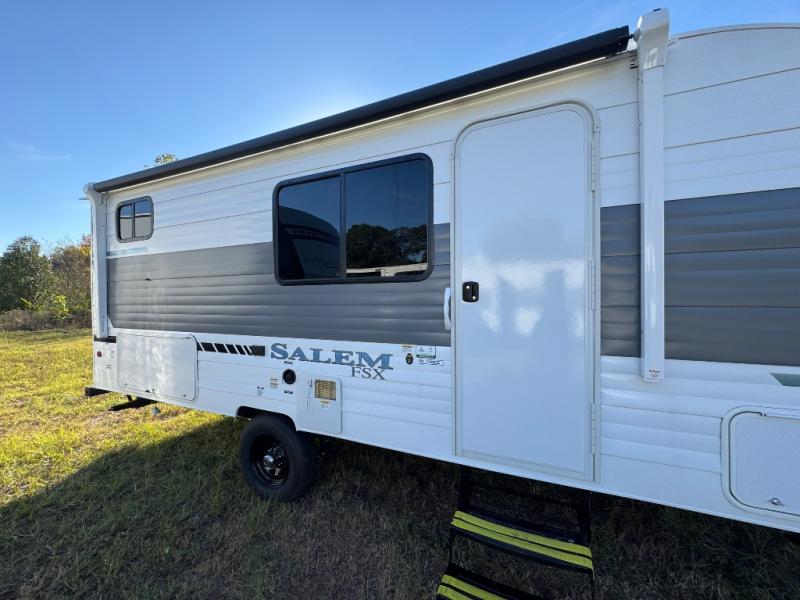 The Forest River Salem FSX travel trailers and toy hauler travel trailers are ultra comfortable and lightweight, perfect for first time or seasoned campers alike! You will love how easy it will be to relax with residential features that will make your space feel just like home, and the durable construction means you can enjoy your RV for years to come. There are a wide variety of floorplans to choose from, including couple's trailers, bunk models, and toy haulers, all with full bath and kitchen amenities and plenty of storage for all your gear!