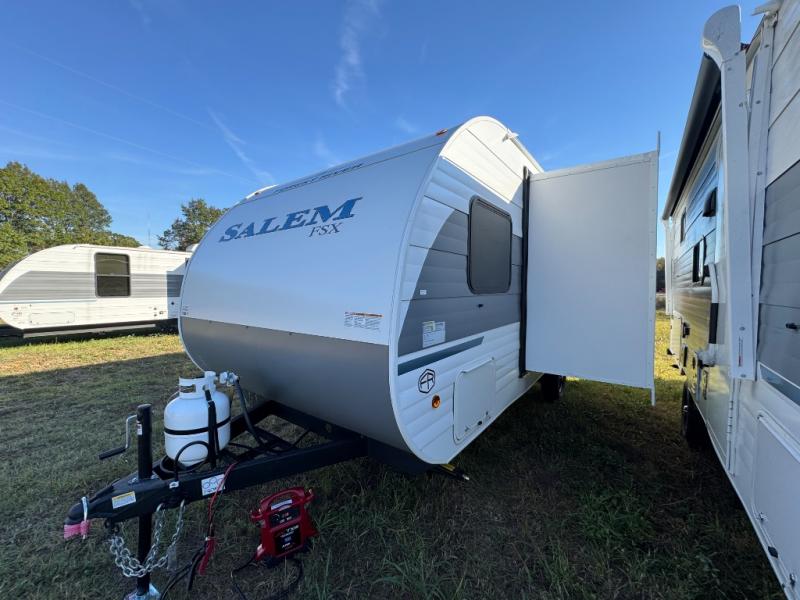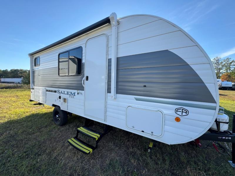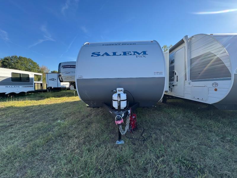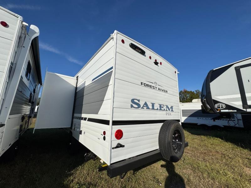 The Forest River Salem FSX travel trailers and toy hauler travel trailers are ultra comfortable and lightweight, perfect for first time or seasoned campers alike! You will love how easy it will be to relax with residential features that will make your space feel just like home, and the durable construction means you can enjoy your RV for years to come. There are a wide variety of floorplans to choose from, including couple's trailers, bunk models, and toy haulers, all with full bath and kitchen amenities and plenty of storage for all your gear!