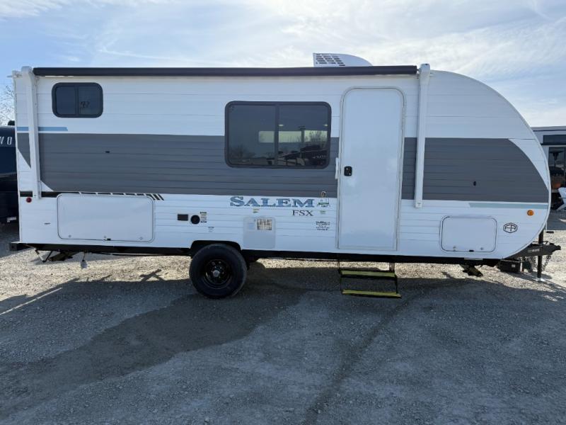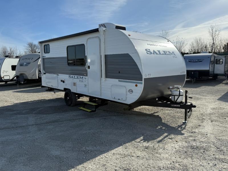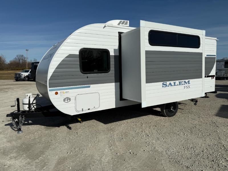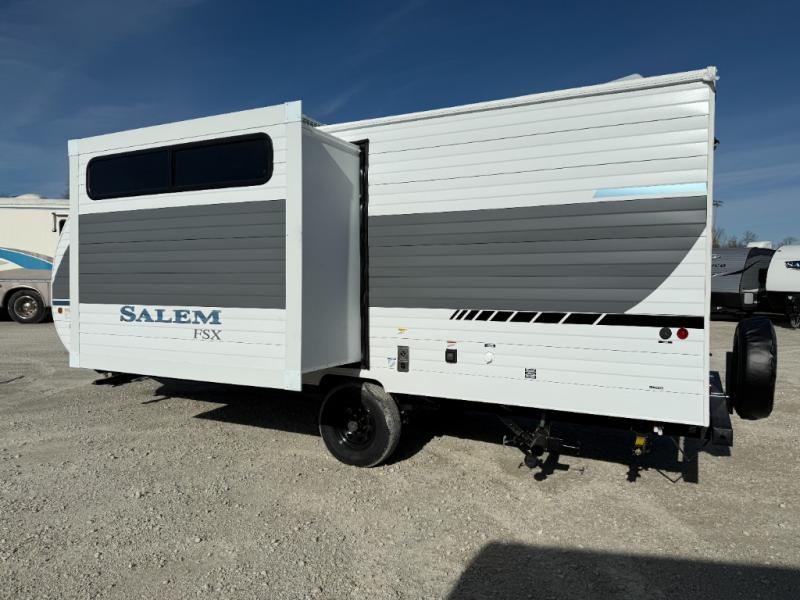 The Forest River Salem FSX travel trailers and toy hauler travel trailers are ultra comfortable and lightweight, perfect for first time or seasoned campers alike! You will love how easy it will be to relax with residential features that will make your space feel just like home, and the durable construction means you can enjoy your RV for years to come. There are a wide variety of floorplans to choose from, including couple's trailers, bunk models, and toy haulers, all with full bath and kitchen amenities and plenty of storage for all your gear!