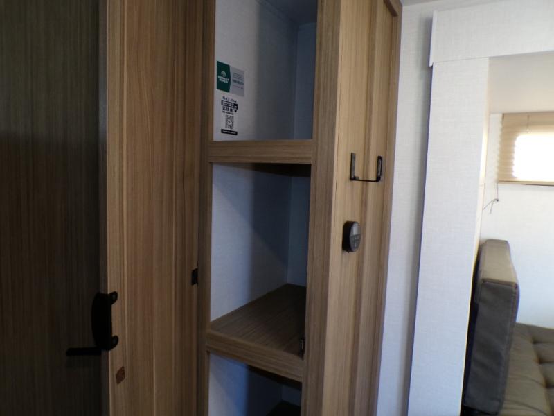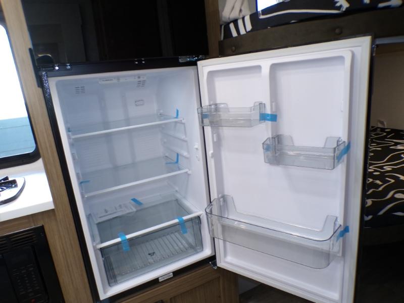 It will be so easy to enjoy time spent in this travel trailer for seven. The front queen bed provides a great night's rest, and there is an overhead cabinet to keep your things organized. Your guests or little ones can claim the double-size bunks for themselves, and there is a full bath adjacent to the bunks for easy nighttime use. A two-burner cooktop in the kitchen will let you make meals for your crew, and a refrigerator keeps leftovers fresh. You can dine at the booth dinette within the slide out or take your plate outdoors to sit under the 15' power awning.
