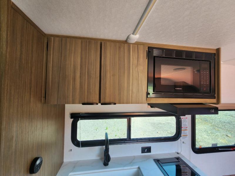 No need will go unmet with this travel trailer! It features a front Murphy bed that will double as seating and sleeping space, double-size bunk beds with storage, plus a booth dinette. You can prepare your best home cooked meals indoors with the two burner cooktop or head to the outside kitchen to fry up some burgers while breathing in some fresh air. You will also appreciate the outside shower and the front exterior full pass-through storage area for all your outdoor gear.