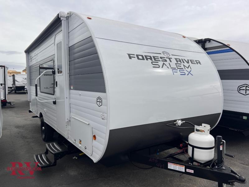 The Forest River Salem FSX travel trailers and toy hauler travel trailers are ultra comfortable and lightweight, perfect for first time or seasoned campers alike! You will love how easy it will be to relax with residential features that will make your space feel just like home, and the durable construction means you can enjoy your RV for years to come. There are a wide variety of floorplans to choose from, including couple's trailers, bunk models, and toy haulers, all with full bath and kitchen amenities and plenty of storage for all your gear!