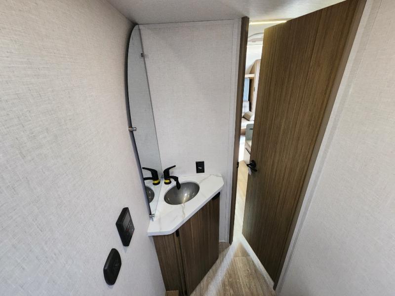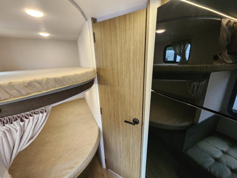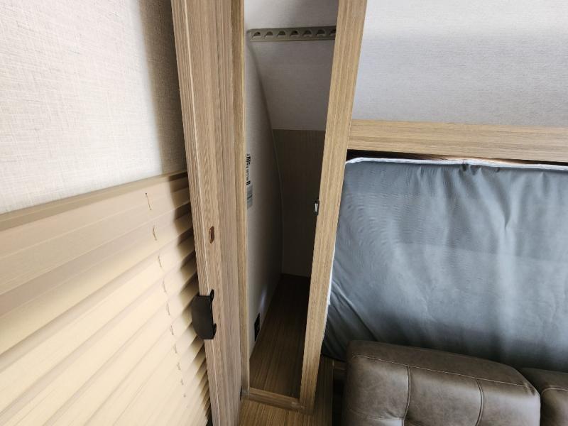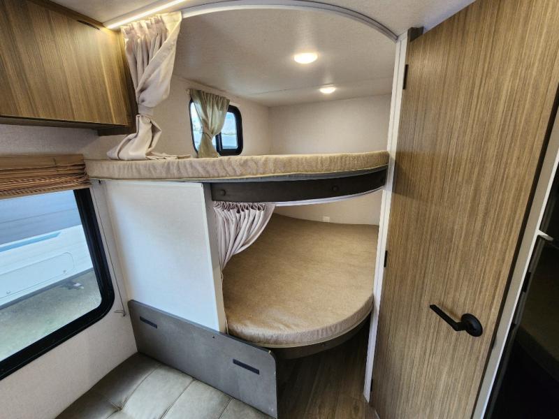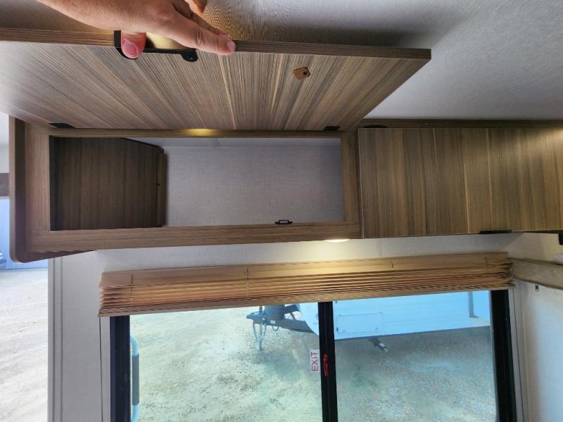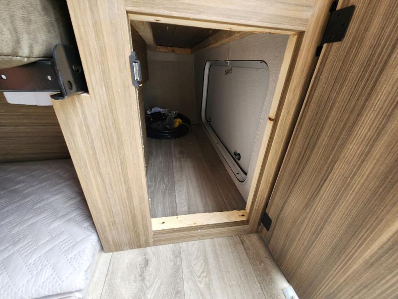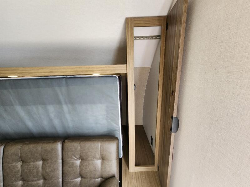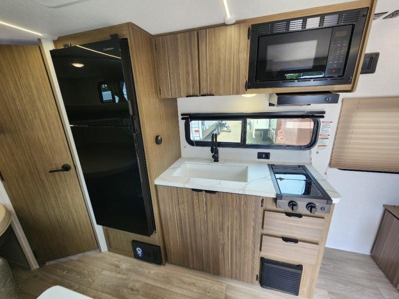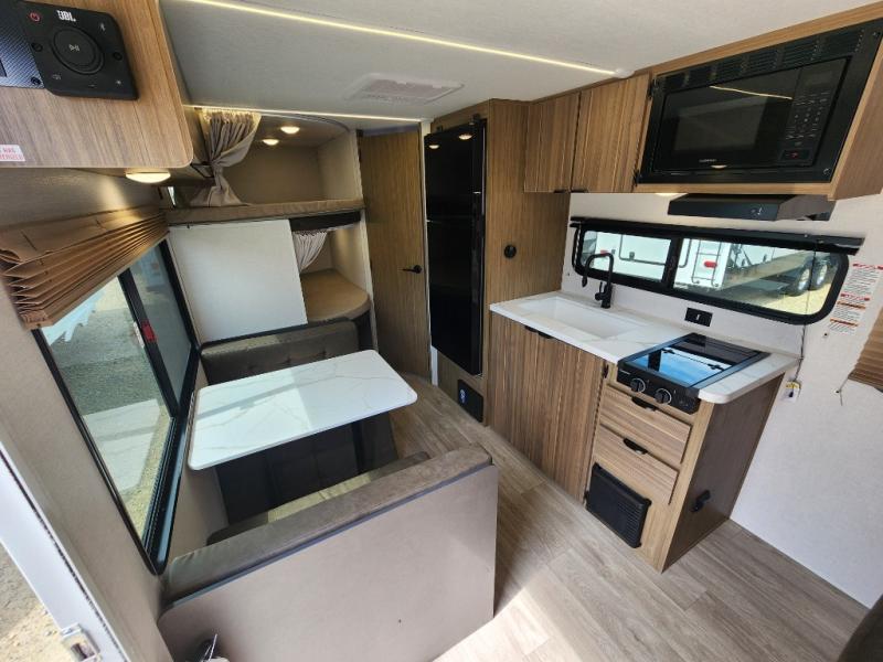No need will go unmet with this travel trailer! It features a front Murphy bed that will double as seating and sleeping space, double-size bunk beds with storage, plus a booth dinette. You can prepare your best home cooked meals indoors with the two burner cooktop or head to the outside kitchen to fry up some burgers while breathing in some fresh air. You will also appreciate the outside shower and the front exterior full pass-through storage area for all your outdoor gear.