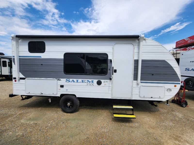 The Forest River Salem FSX travel trailers and toy hauler travel trailers are ultra comfortable and lightweight, perfect for first time or seasoned campers alike! You will love how easy it will be to relax with residential features that will make your space feel just like home, and the durable construction means you can enjoy your RV for years to come. There are a wide variety of floorplans to choose from, including couple's trailers, bunk models, and toy haulers, all with full bath and kitchen amenities and plenty of storage for all your gear!