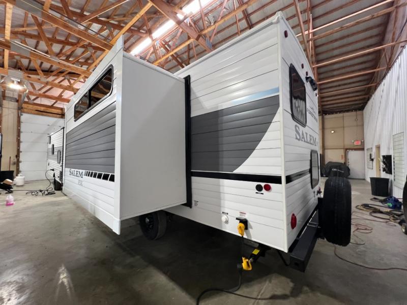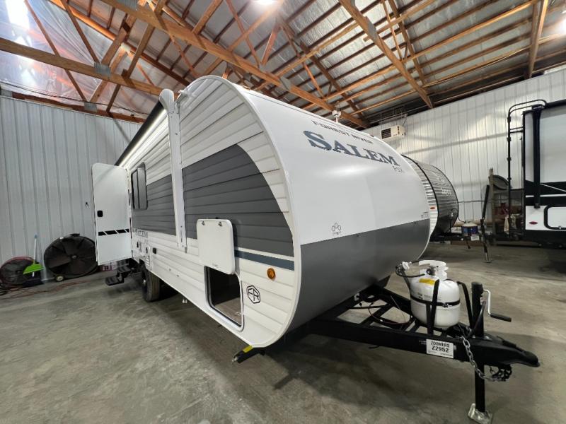 The Forest River Salem FSX travel trailers and toy hauler travel trailers are ultra comfortable and lightweight, perfect for first time or seasoned campers alike! You will love how easy it will be to relax with residential features that will make your space feel just like home, and the durable construction means you can enjoy your RV for years to come. There are a wide variety of floorplans to choose from, including couple's trailers, bunk models, and toy haulers, all with full bath and kitchen amenities and plenty of storage for all your gear!