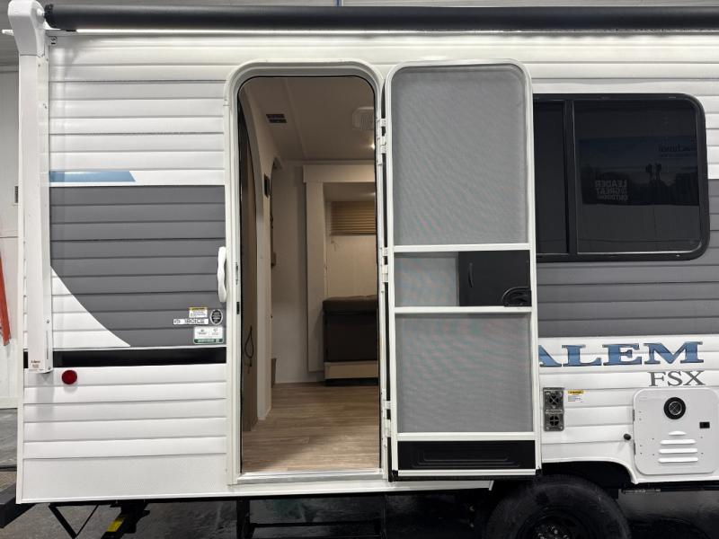 The Forest River Salem FSX travel trailers and toy hauler travel trailers are ultra comfortable and lightweight, perfect for first time or seasoned campers alike! You will love how easy it will be to relax with residential features that will make your space feel just like home, and the durable construction means you can enjoy your RV for years to come. There are a wide variety of floorplans to choose from, including couple's trailers, bunk models, and toy haulers, all with full bath and kitchen amenities and plenty of storage for all your gear!