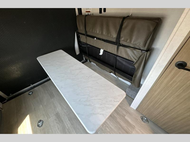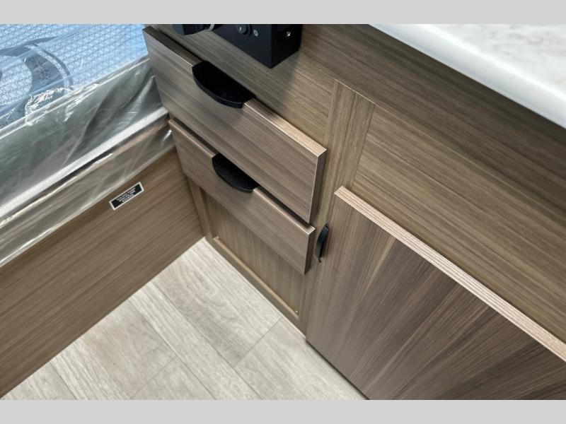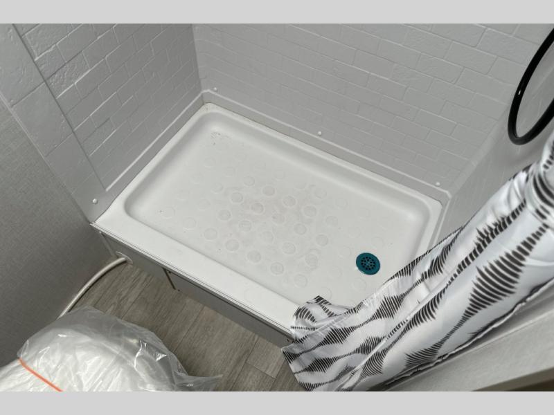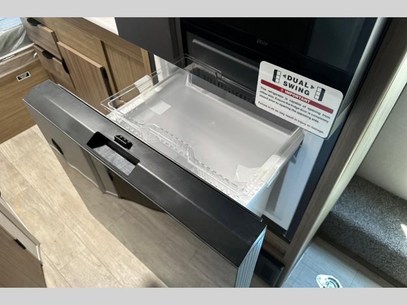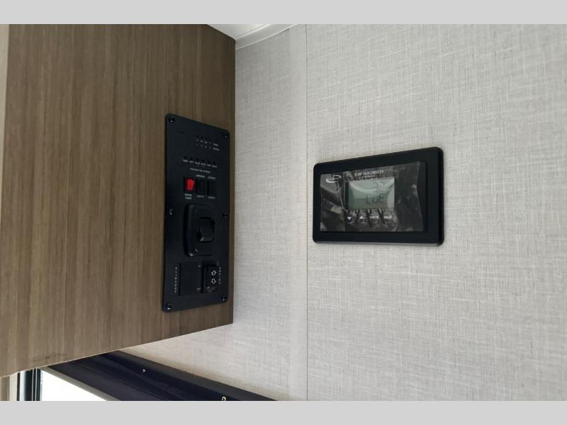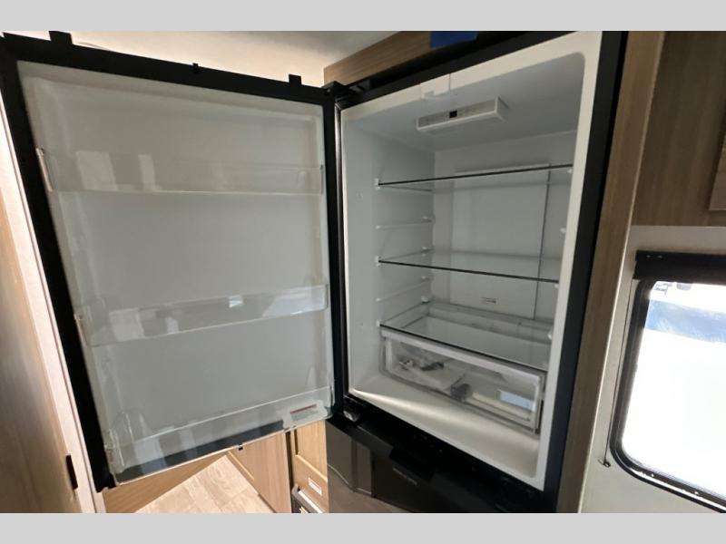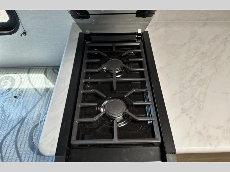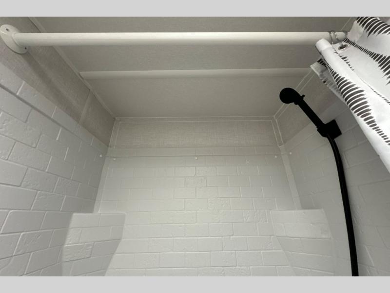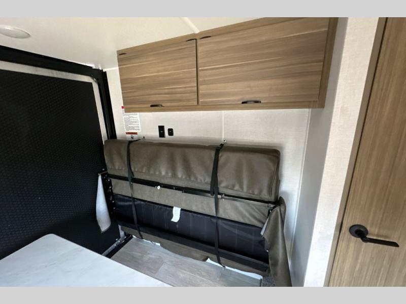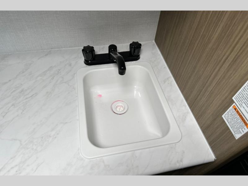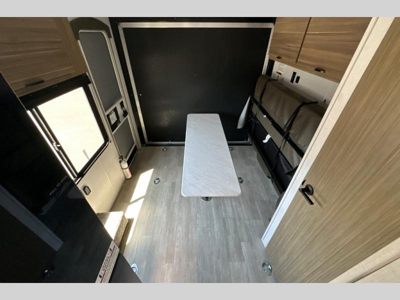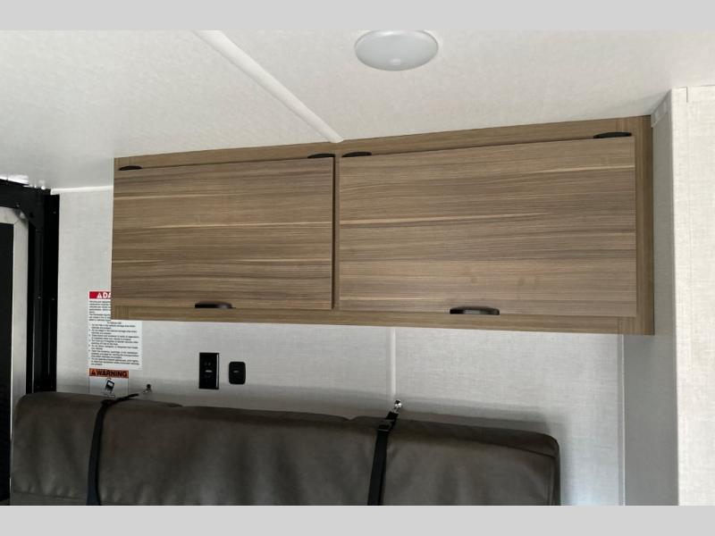 You don't have to leave your favorite off-road toys home with this toy hauler! They can easily be loaded with the 82" x 75" 3,000 lb. ramp door, and stored in the 13' 5" total garage length when you utilize the space to the front bed. Once you have arrived, you can set up the flip down sofa with removable table, unpack the pass-through storage, and grab a snack from the walk-in pantry. The private bathroom has a shower to freshen up in each morning. Prepare your best meals with the two burner cooktop and store any leftovers in the refrigerator. Get a good night's rest on the front queen bed, and store your belongings in the overhead cabinet.
