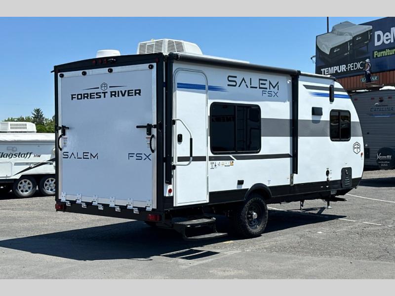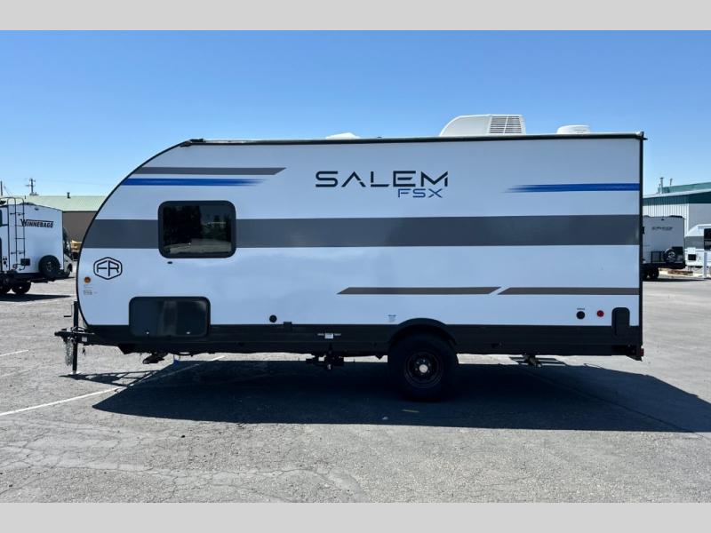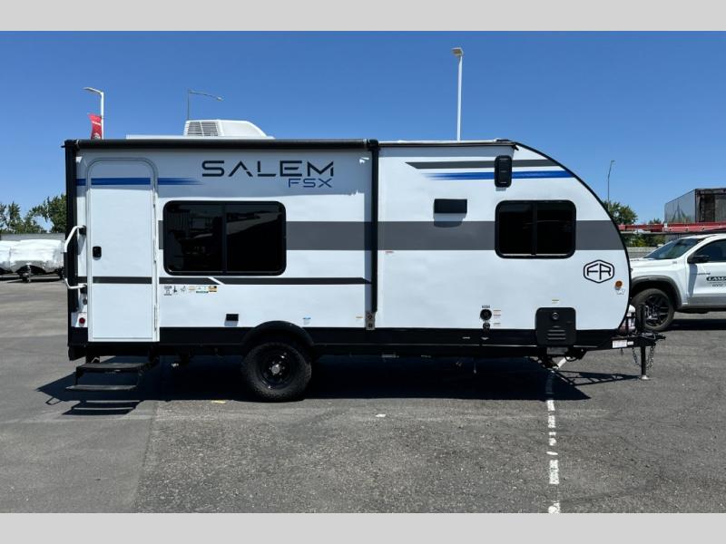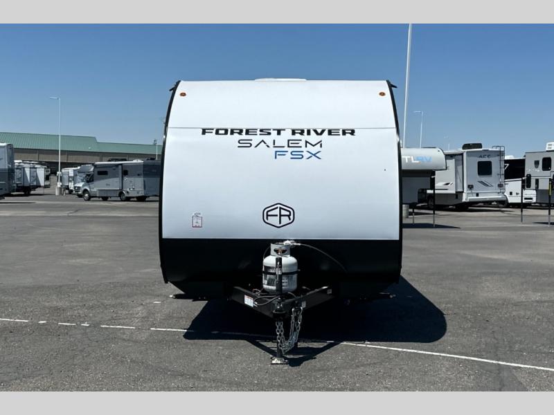 The Forest River Salem FSX travel trailers and toy hauler travel trailers are ultra comfortable and lightweight, perfect for first time or seasoned campers alike! You will love how easy it will be to relax with residential features that will make your space feel just like home, and the durable construction means you can enjoy your RV for years to come. There are a wide variety of floorplans to choose from, including couple's trailers, bunk models, and toy haulers, all with full bath and kitchen amenities and plenty of storage for all your gear!