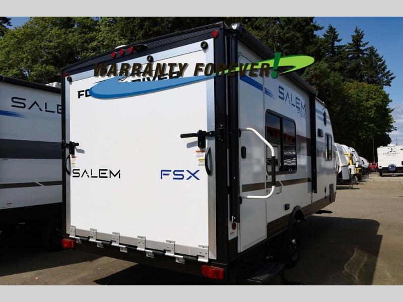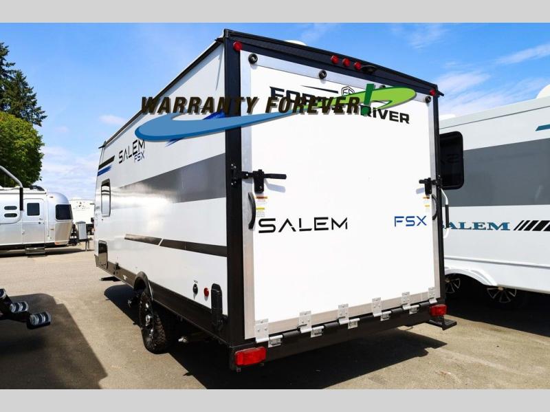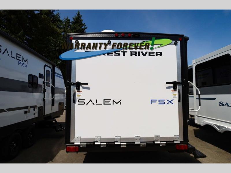 The Forest River Salem FSX travel trailers and toy hauler travel trailers are ultra comfortable and lightweight, perfect for first time or seasoned campers alike! You will love how easy it will be to relax with residential features that will make your space feel just like home, and the durable construction means you can enjoy your RV for years to come. There are a wide variety of floorplans to choose from, including couple's trailers, bunk models, and toy haulers, all with full bath and kitchen amenities and plenty of storage for all your gear!