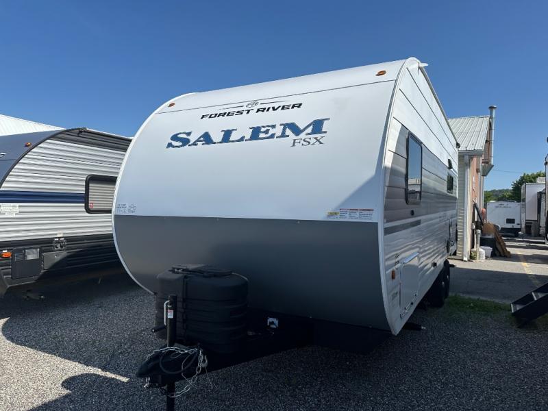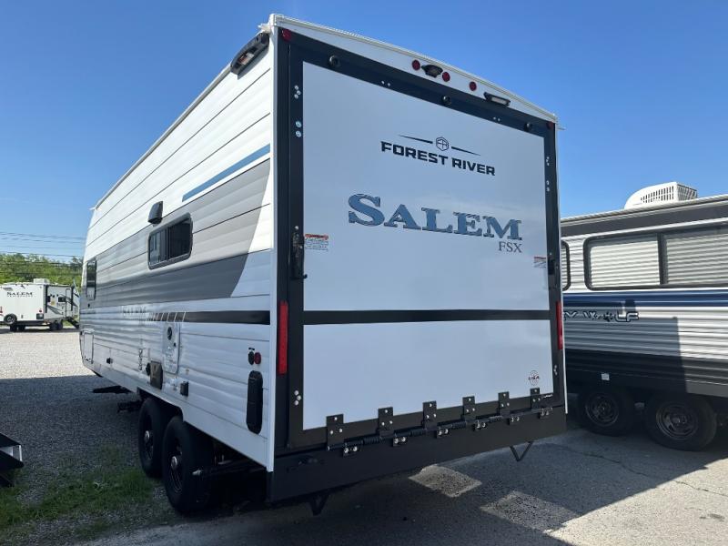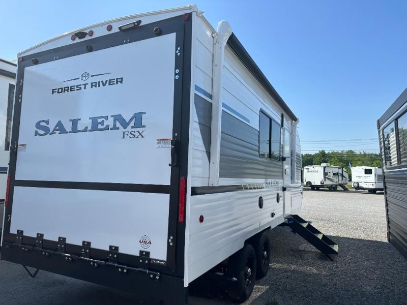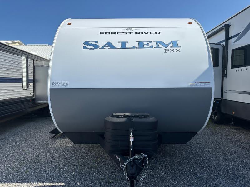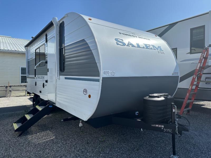 The Forest River Salem FSX travel trailers and toy hauler travel trailers are ultra comfortable and lightweight, perfect for first time or seasoned campers alike! You will love how easy it will be to relax with residential features that will make your space feel just like home, and the durable construction means you can enjoy your RV for years to come. There are a wide variety of floorplans to choose from, including couple's trailers, bunk models, and toy haulers, all with full bath and kitchen amenities and plenty of storage for all your gear!