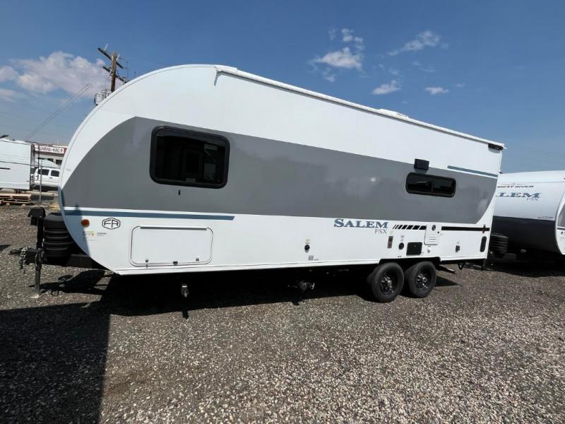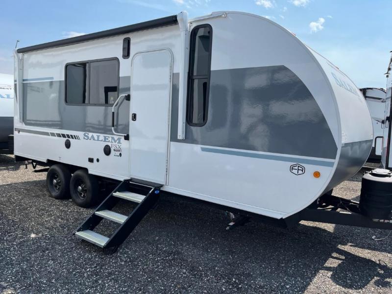 The Forest River Salem FSX travel trailers and toy hauler travel trailers are ultra comfortable and lightweight, perfect for first time or seasoned campers alike! You will love how easy it will be to relax with residential features that will make your space feel just like home, and the durable construction means you can enjoy your RV for years to come. There are a wide variety of floorplans to choose from, including couple's trailers, bunk models, and toy haulers, all with full bath and kitchen amenities and plenty of storage for all your gear!