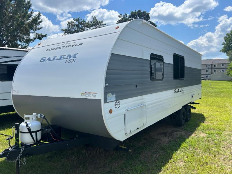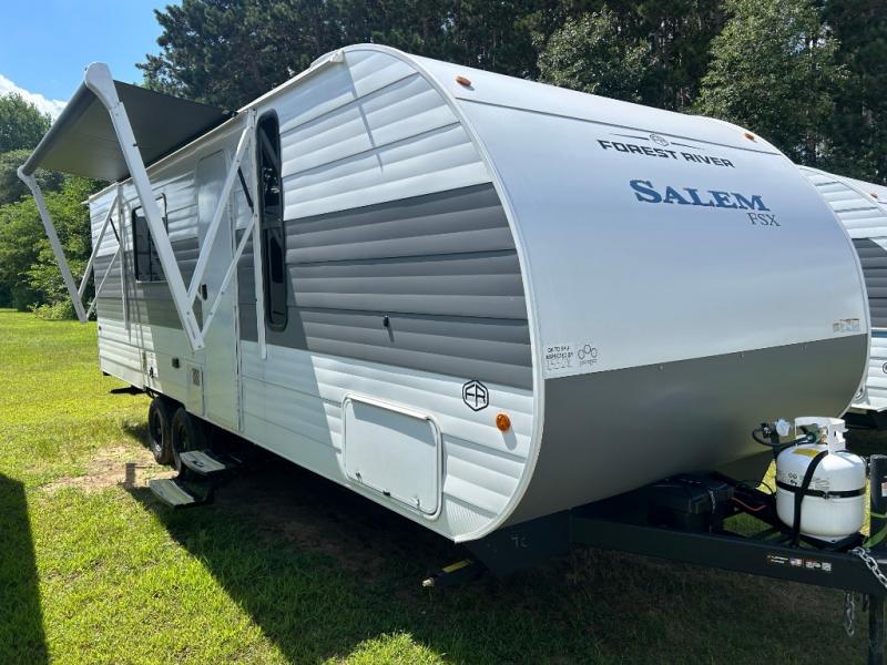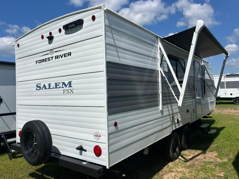 The Forest River Salem FSX travel trailers and toy hauler travel trailers are ultra comfortable and lightweight, perfect for first time or seasoned campers alike! You will love how easy it will be to relax with residential features that will make your space feel just like home, and the durable construction means you can enjoy your RV for years to come. There are a wide variety of floorplans to choose from, including couple's trailers, bunk models, and toy haulers, all with full bath and kitchen amenities and plenty of storage for all your gear!