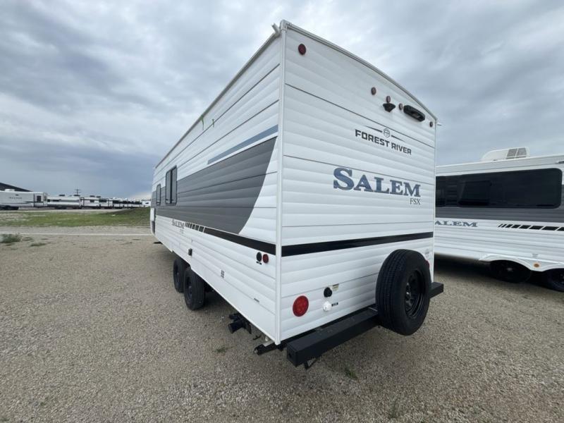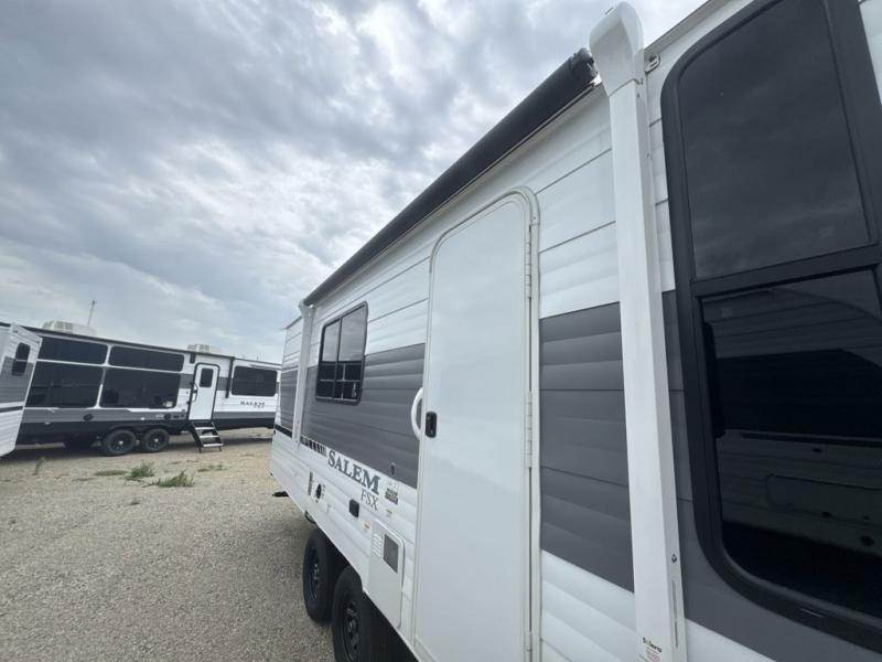 The Forest River Salem FSX travel trailers and toy hauler travel trailers are ultra comfortable and lightweight, perfect for first time or seasoned campers alike! You will love how easy it will be to relax with residential features that will make your space feel just like home, and the durable construction means you can enjoy your RV for years to come. There are a wide variety of floorplans to choose from, including couple's trailers, bunk models, and toy haulers, all with full bath and kitchen amenities and plenty of storage for all your gear!