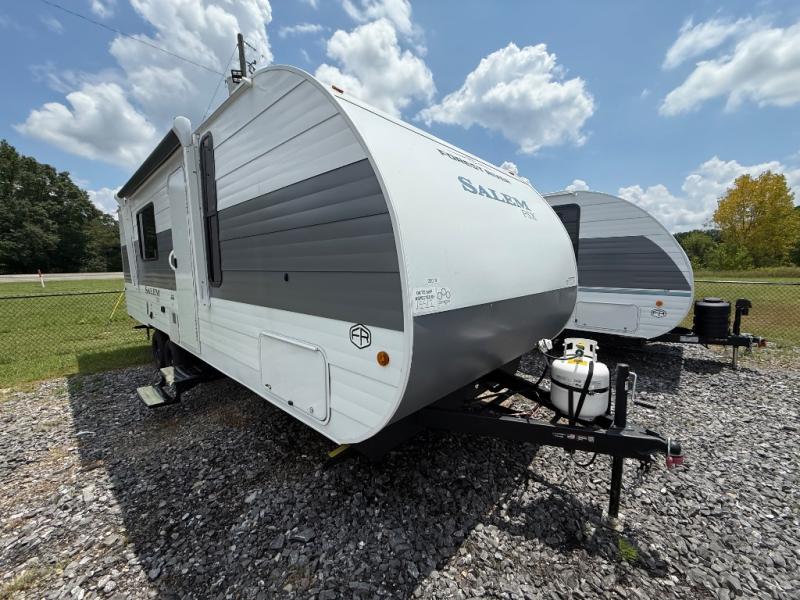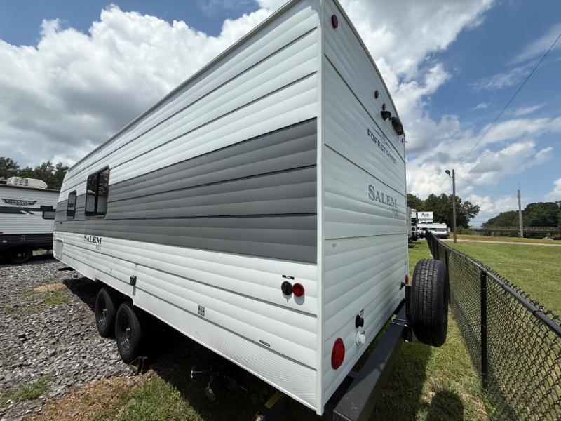 The Forest River Salem FSX travel trailers and toy hauler travel trailers are ultra comfortable and lightweight, perfect for first time or seasoned campers alike! You will love how easy it will be to relax with residential features that will make your space feel just like home, and the durable construction means you can enjoy your RV for years to come. There are a wide variety of floorplans to choose from, including couple's trailers, bunk models, and toy haulers, all with full bath and kitchen amenities and plenty of storage for all your gear!
