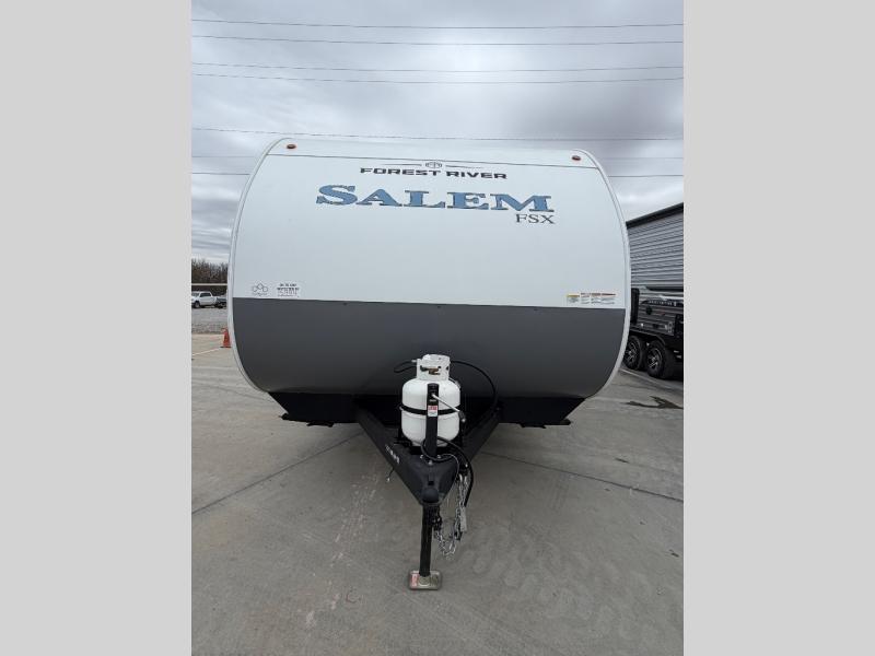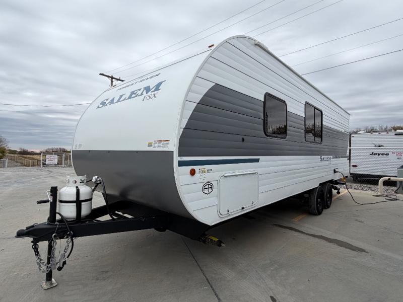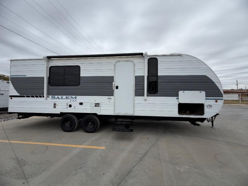 The Forest River Salem FSX travel trailers and toy hauler travel trailers are ultra comfortable and lightweight, perfect for first time or seasoned campers alike! You will love how easy it will be to relax with residential features that will make your space feel just like home, and the durable construction means you can enjoy your RV for years to come. There are a wide variety of floorplans to choose from, including couple's trailers, bunk models, and toy haulers, all with full bath and kitchen amenities and plenty of storage for all your gear!
