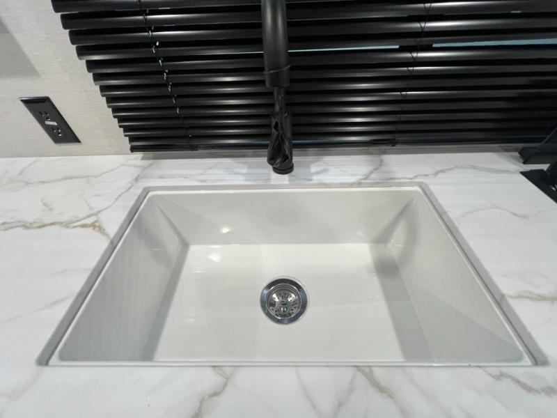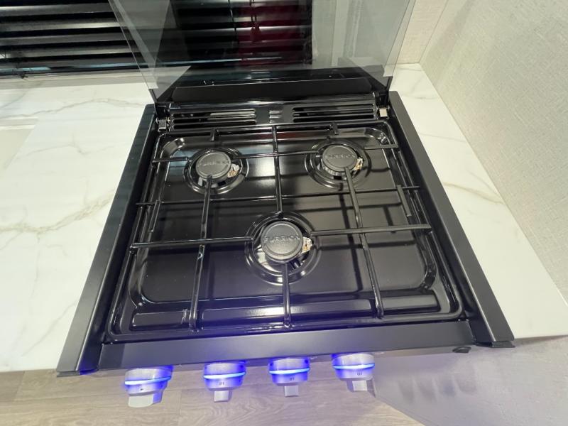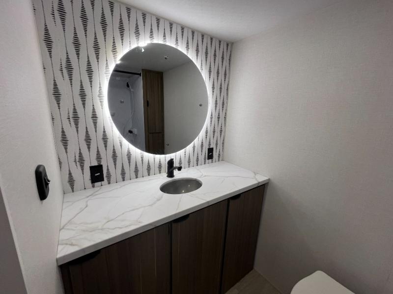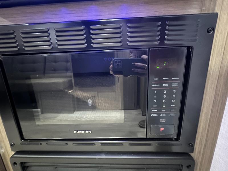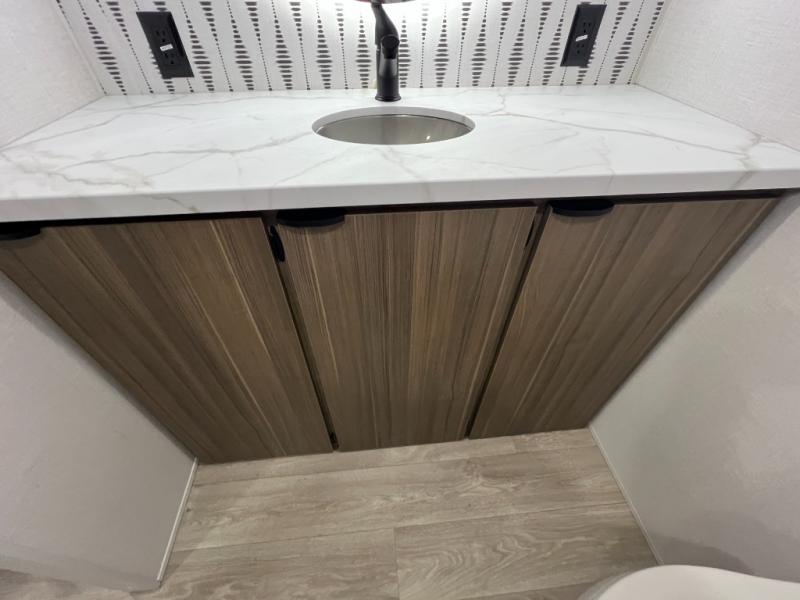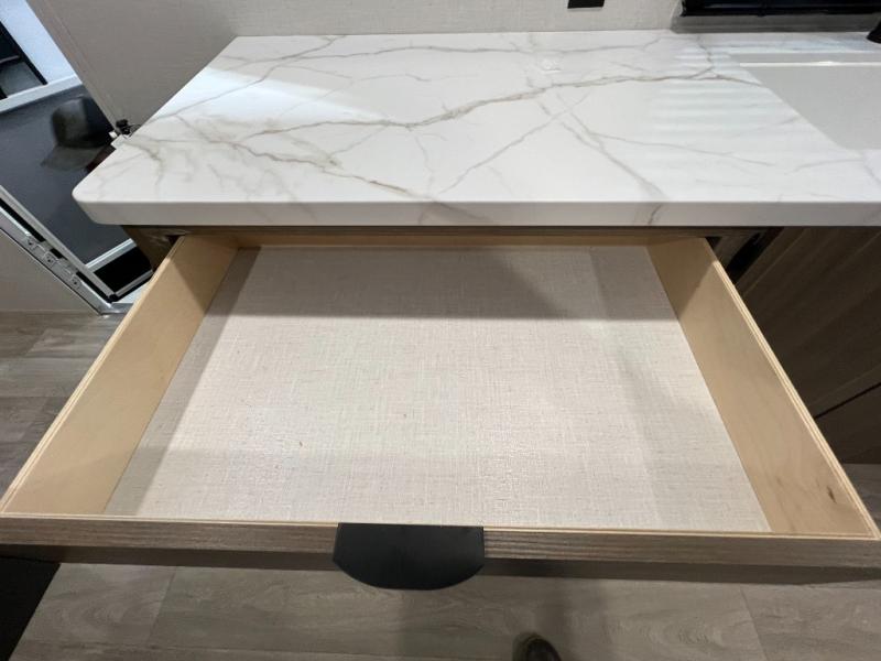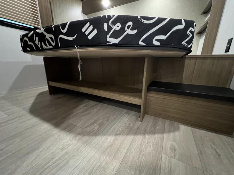 Camping is made easy in this travel trailer with at-home comforts! You'll have the front private bedroom with a king bed all to yourselves, and there are dual bedroom wardrobes to keep your space neat and clean. Any additional guests can sleep on the super lounge with a removable table. You will appreciate the full rear bath complete with a linen closet and dual bath sinks so you both can get ready for bed at once. And a full kitchen lets you whip up your best meals!
