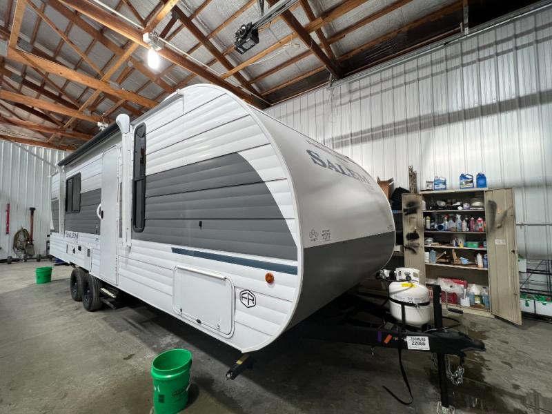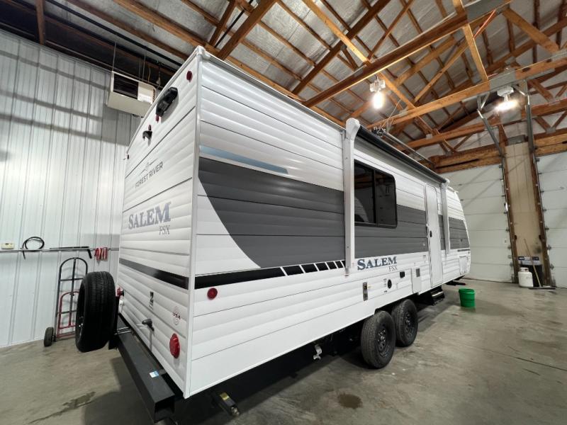 The Forest River Salem FSX travel trailers and toy hauler travel trailers are ultra comfortable and lightweight, perfect for first time or seasoned campers alike! You will love how easy it will be to relax with residential features that will make your space feel just like home, and the durable construction means you can enjoy your RV for years to come. There are a wide variety of floorplans to choose from, including couple's trailers, bunk models, and toy haulers, all with full bath and kitchen amenities and plenty of storage for all your gear!