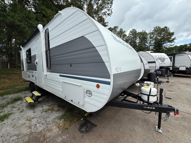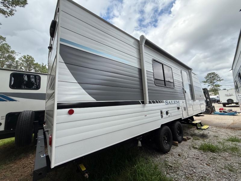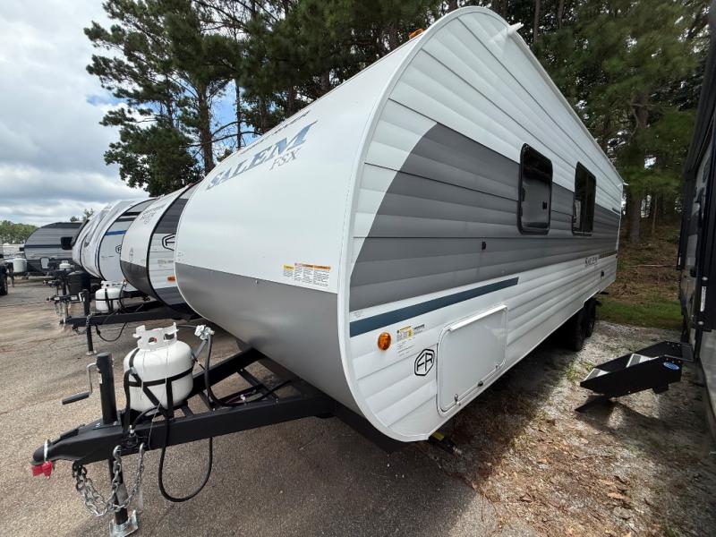The Forest River Salem FSX travel trailers and toy hauler travel trailers are ultra comfortable and lightweight, perfect for first time or seasoned campers alike! You will love how easy it will be to relax with residential features that will make your space feel just like home, and the durable construction means you can enjoy your RV for years to come. There are a wide variety of floorplans to choose from, including couple's trailers, bunk models, and toy haulers, all with full bath and kitchen amenities and plenty of storage for all your gear!