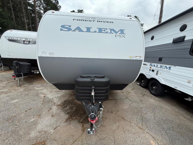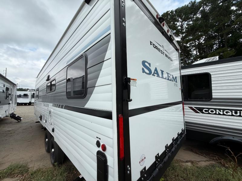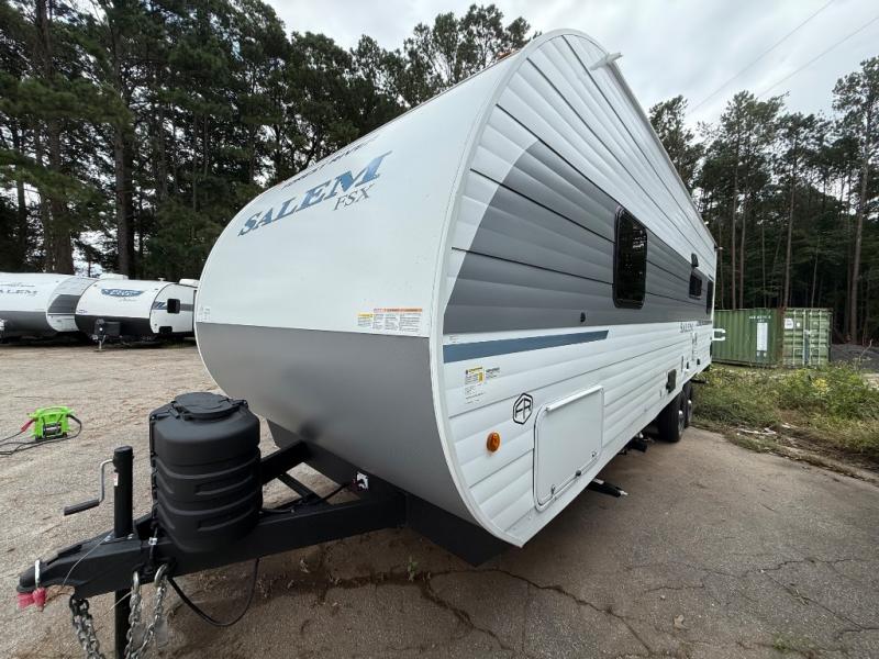 The Forest River Salem FSX travel trailers and toy hauler travel trailers are ultra comfortable and lightweight, perfect for first time or seasoned campers alike! You will love how easy it will be to relax with residential features that will make your space feel just like home, and the durable construction means you can enjoy your RV for years to come. There are a wide variety of floorplans to choose from, including couple's trailers, bunk models, and toy haulers, all with full bath and kitchen amenities and plenty of storage for all your gear!