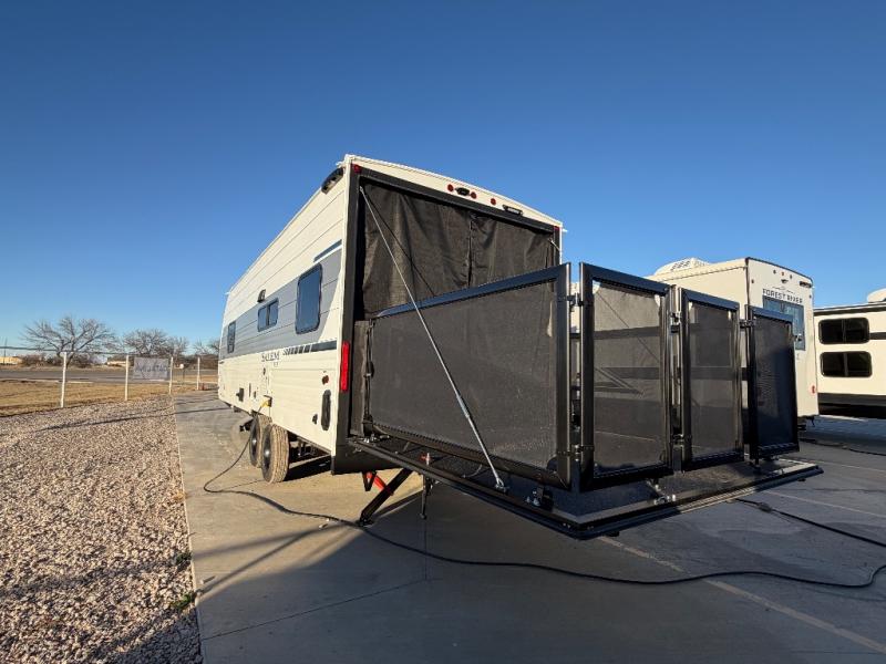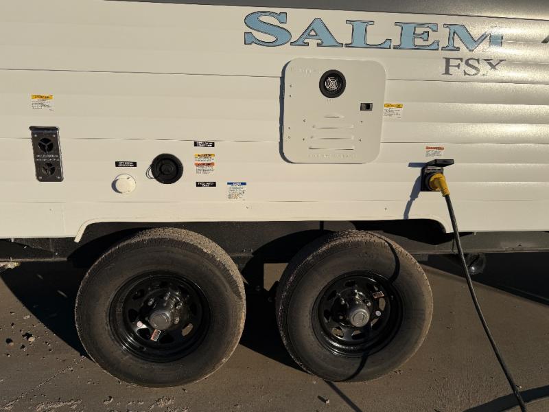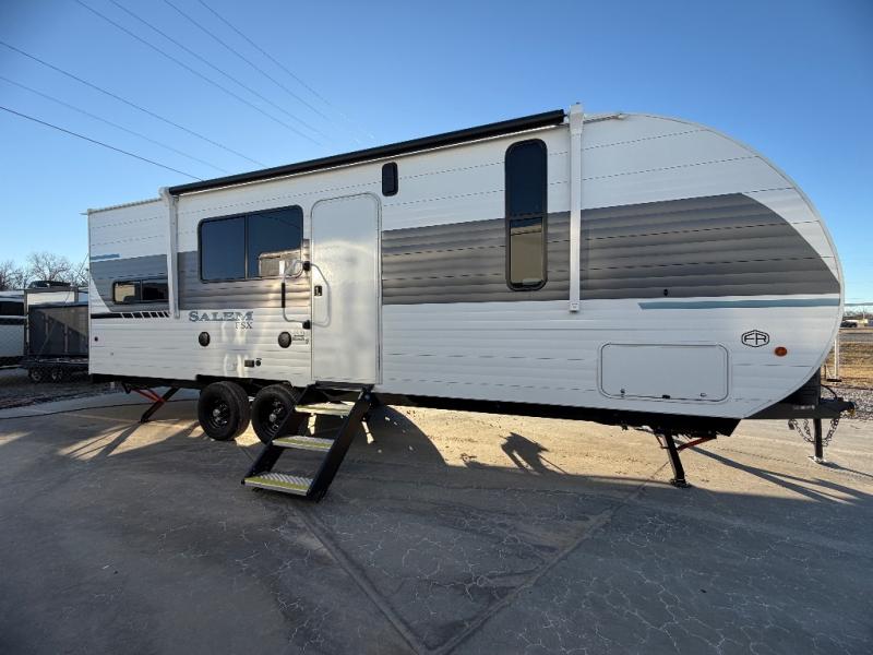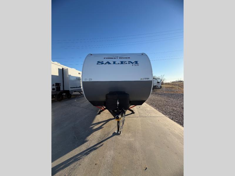 The Forest River Salem FSX travel trailers and toy hauler travel trailers are ultra comfortable and lightweight, perfect for first time or seasoned campers alike! You will love how easy it will be to relax with residential features that will make your space feel just like home, and the durable construction means you can enjoy your RV for years to come. There are a wide variety of floorplans to choose from, including couple's trailers, bunk models, and toy haulers, all with full bath and kitchen amenities and plenty of storage for all your gear!