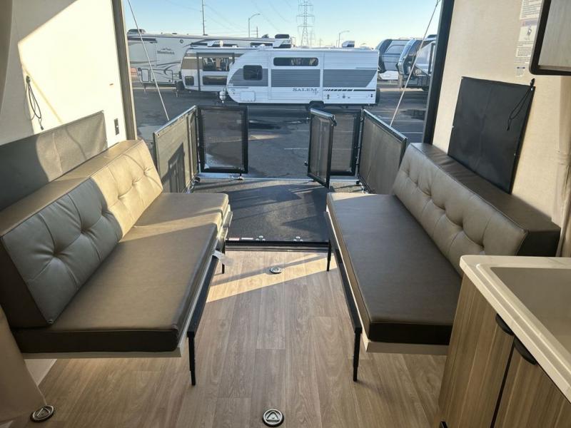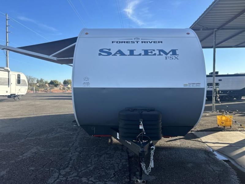 The Forest River Salem FSX travel trailers and toy hauler travel trailers are ultra comfortable and lightweight, perfect for first time or seasoned campers alike! You will love how easy it will be to relax with residential features that will make your space feel just like home, and the durable construction means you can enjoy your RV for years to come. There are a wide variety of floorplans to choose from, including couple's trailers, bunk models, and toy haulers, all with full bath and kitchen amenities and plenty of storage for all your gear!