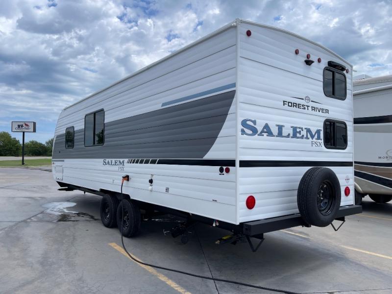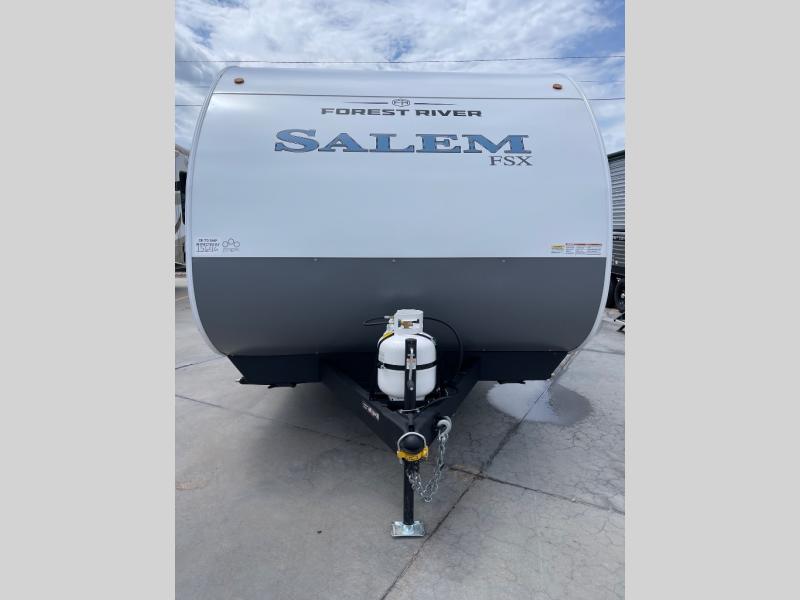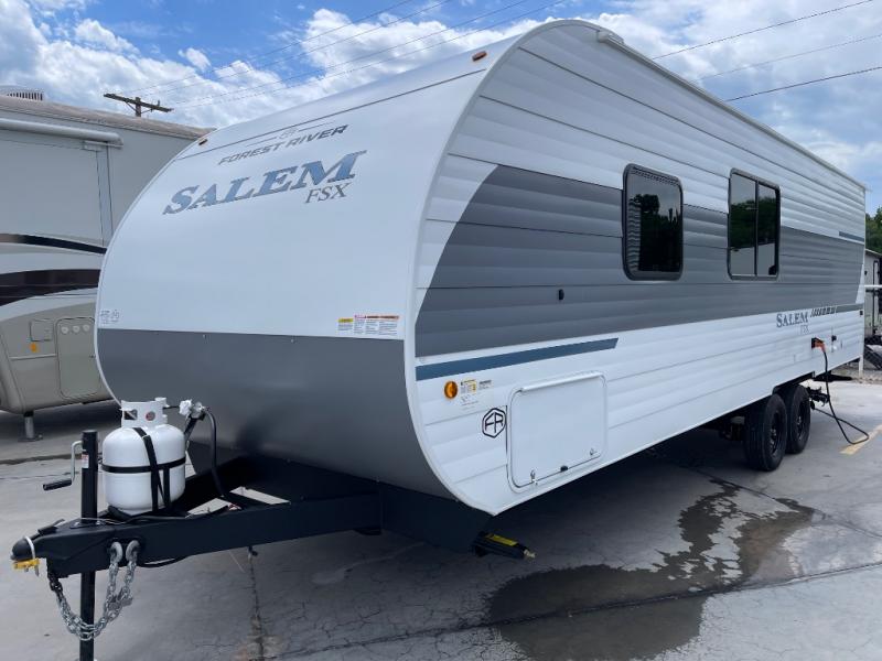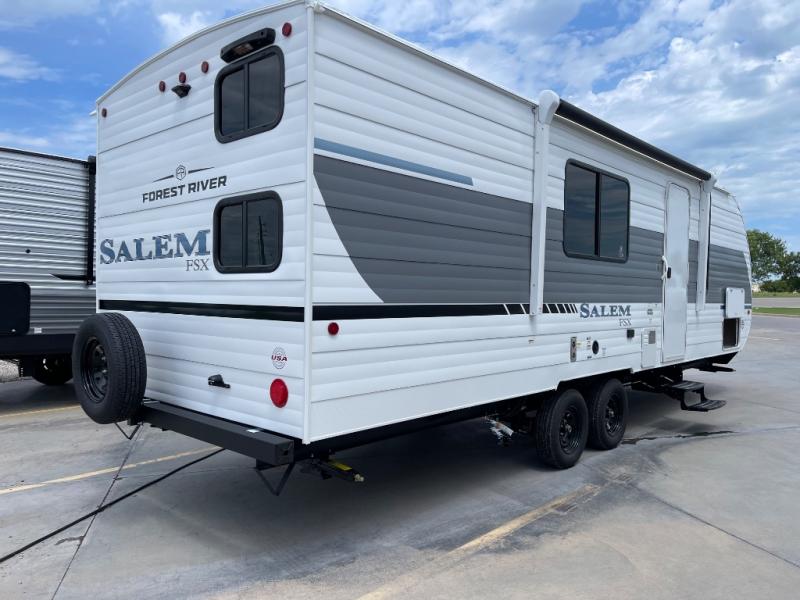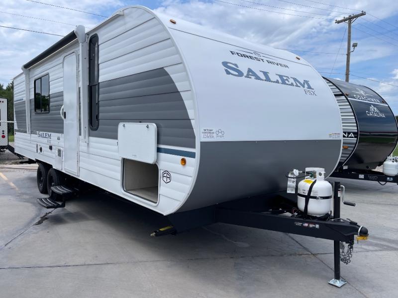 The Forest River Salem FSX travel trailers and toy hauler travel trailers are ultra comfortable and lightweight, perfect for first time or seasoned campers alike! You will love how easy it will be to relax with residential features that will make your space feel just like home, and the durable construction means you can enjoy your RV for years to come. There are a wide variety of floorplans to choose from, including couple's trailers, bunk models, and toy haulers, all with full bath and kitchen amenities and plenty of storage for all your gear!