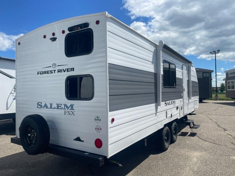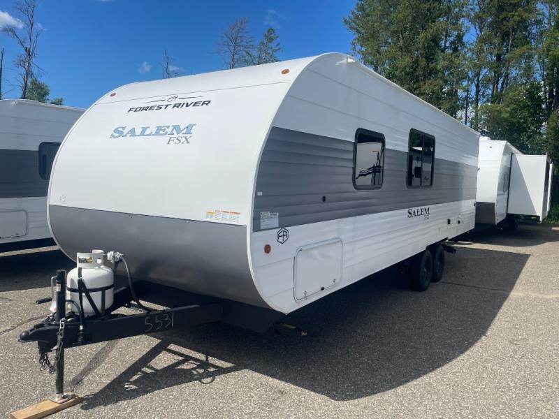 The Forest River Salem FSX travel trailers and toy hauler travel trailers are ultra comfortable and lightweight, perfect for first time or seasoned campers alike! You will love how easy it will be to relax with residential features that will make your space feel just like home, and the durable construction means you can enjoy your RV for years to come. There are a wide variety of floorplans to choose from, including couple's trailers, bunk models, and toy haulers, all with full bath and kitchen amenities and plenty of storage for all your gear!