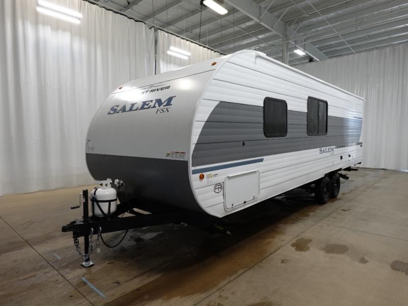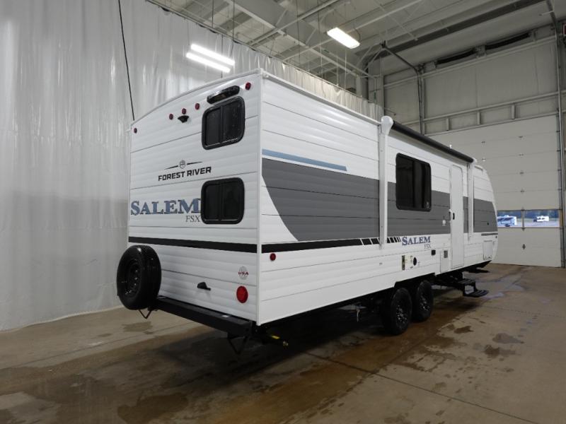 The Forest River Salem FSX travel trailers and toy hauler travel trailers are ultra comfortable and lightweight, perfect for first time or seasoned campers alike! You will love how easy it will be to relax with residential features that will make your space feel just like home, and the durable construction means you can enjoy your RV for years to come. There are a wide variety of floorplans to choose from, including couple's trailers, bunk models, and toy haulers, all with full bath and kitchen amenities and plenty of storage for all your gear!
