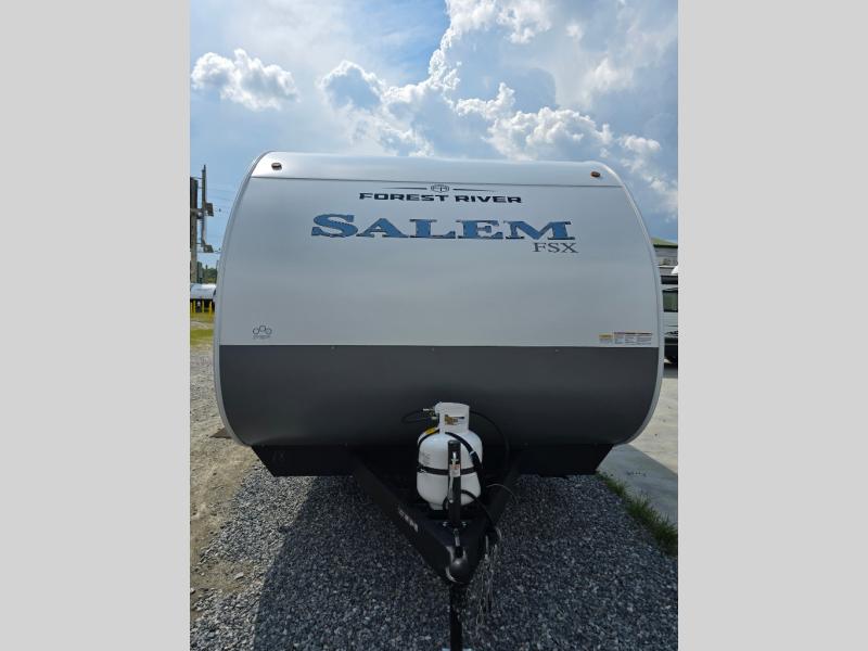 The Forest River Salem FSX Limited Edition travel trailer is easy to tow and easy to love, so come take a look! You'll appreciate the aerodynamic front profile, diamond plate front rock guard, and seamless holding tanks. The 26" entry doors are easy to access. Nitrogen filled tires offer a smooth ride, but there's a full-size spare tire if you happen to need it. A dedicated cable TV hookup is located on the exterior, so you can settle in under the power awning and watch some TV.