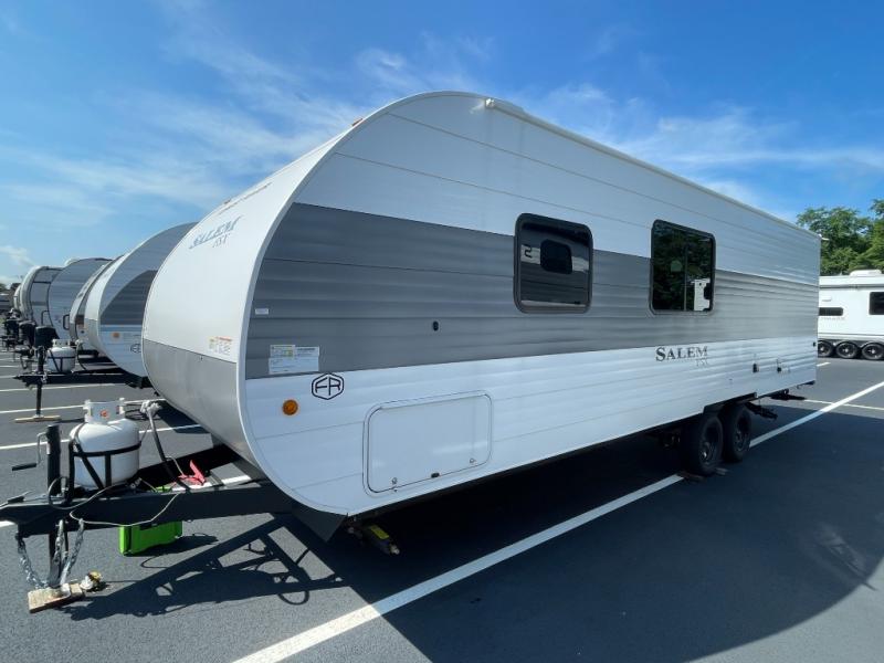 The Forest River Salem FSX travel trailers and toy hauler travel trailers are ultra comfortable and lightweight, perfect for first time or seasoned campers alike! You will love how easy it will be to relax with residential features that will make your space feel just like home, and the durable construction means you can enjoy your RV for years to come. There are a wide variety of floorplans to choose from, including couple's trailers, bunk models, and toy haulers, all with full bath and kitchen amenities and plenty of storage for all your gear!