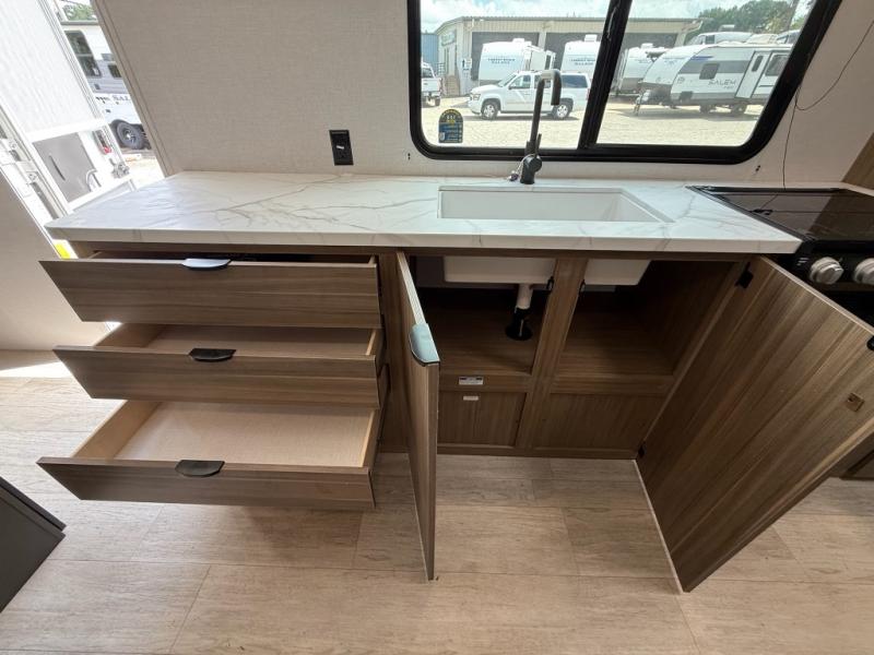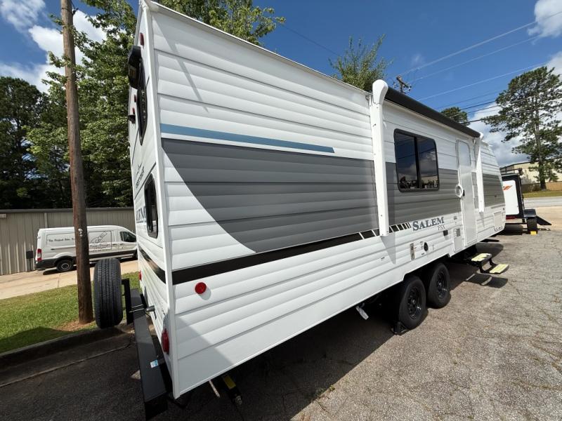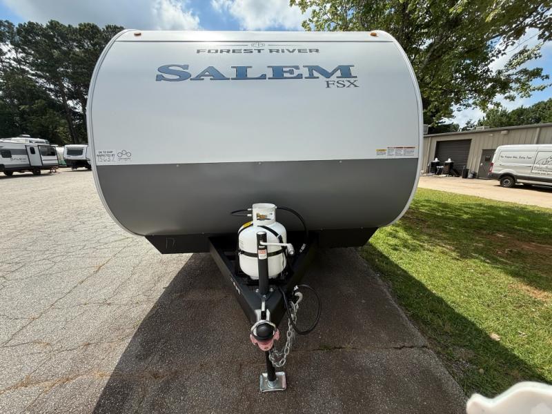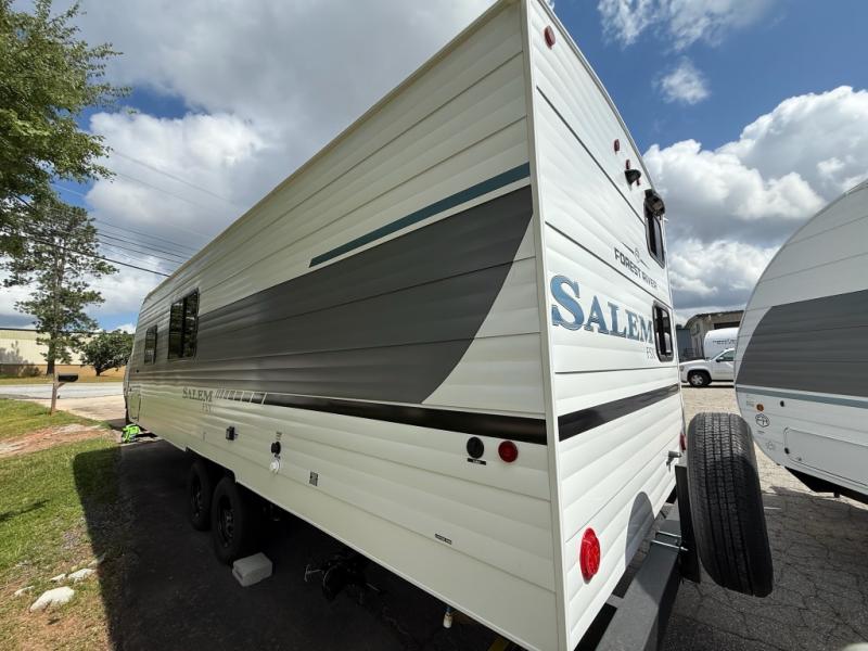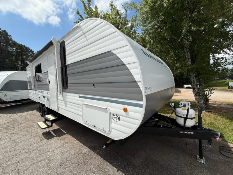 The Forest River Salem FSX travel trailers and toy hauler travel trailers are ultra comfortable and lightweight, perfect for first time or seasoned campers alike! You will love how easy it will be to relax with residential features that will make your space feel just like home, and the durable construction means you can enjoy your RV for years to come. There are a wide variety of floorplans to choose from, including couple's trailers, bunk models, and toy haulers, all with full bath and kitchen amenities and plenty of storage for all your gear!