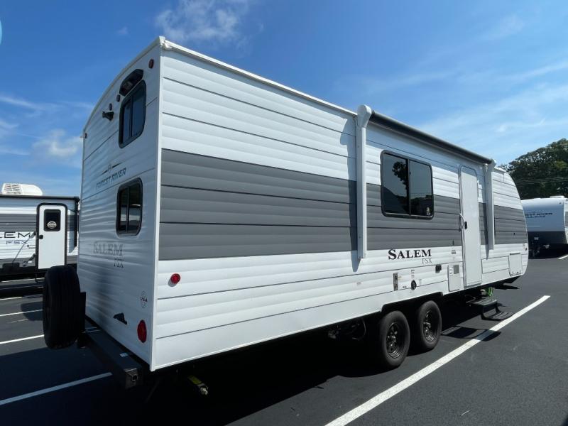 The Forest River Salem FSX travel trailers and toy hauler travel trailers are ultra comfortable and lightweight, perfect for first time or seasoned campers alike! You will love how easy it will be to relax with residential features that will make your space feel just like home, and the durable construction means you can enjoy your RV for years to come. There are a wide variety of floorplans to choose from, including couple's trailers, bunk models, and toy haulers, all with full bath and kitchen amenities and plenty of storage for all your gear!