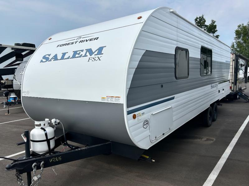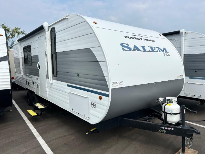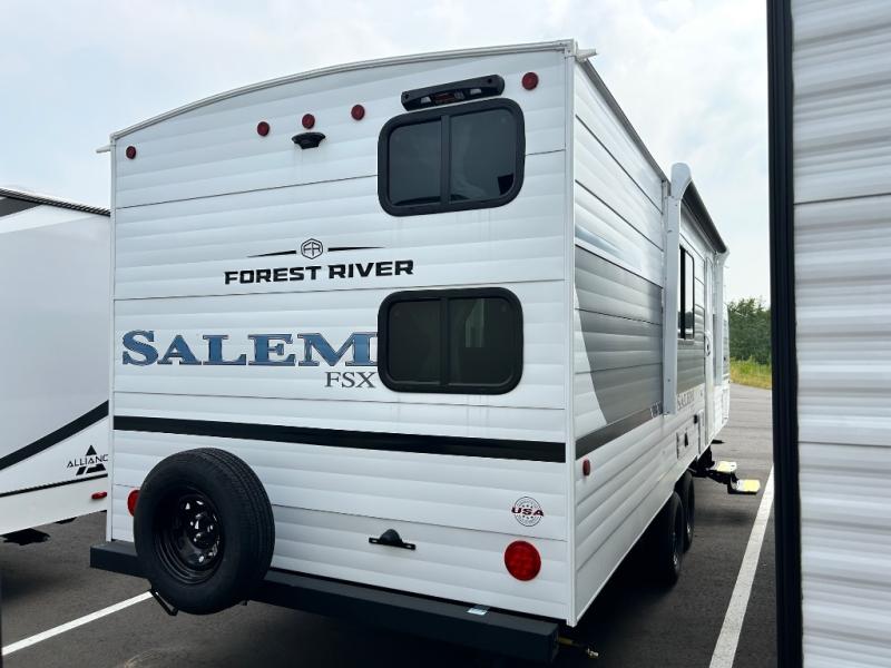 The Forest River Salem FSX travel trailers and toy hauler travel trailers are ultra comfortable and lightweight, perfect for first time or seasoned campers alike! You will love how easy it will be to relax with residential features that will make your space feel just like home, and the durable construction means you can enjoy your RV for years to come. There are a wide variety of floorplans to choose from, including couple's trailers, bunk models, and toy haulers, all with full bath and kitchen amenities and plenty of storage for all your gear!