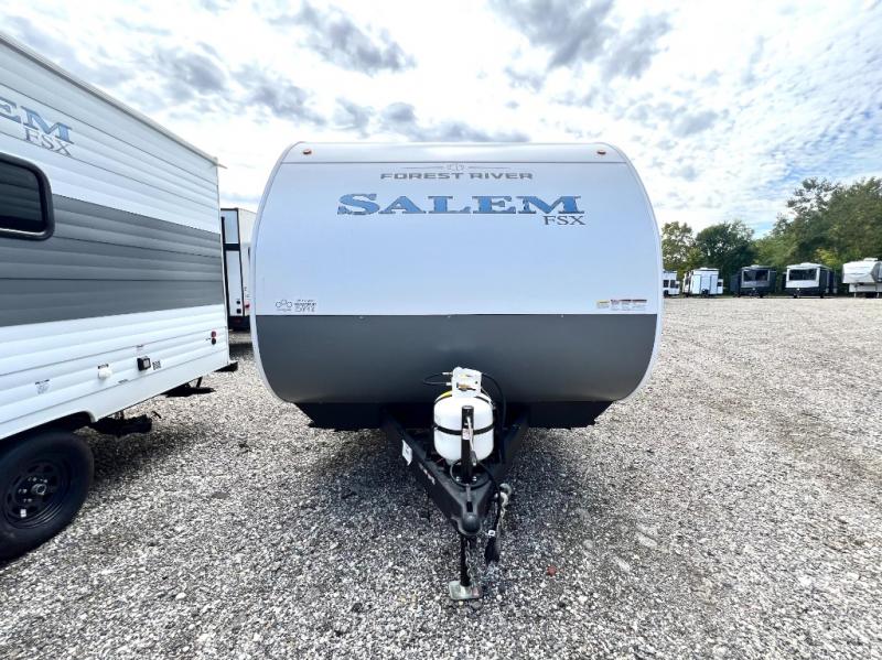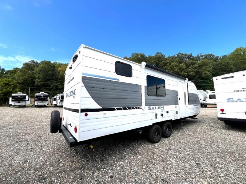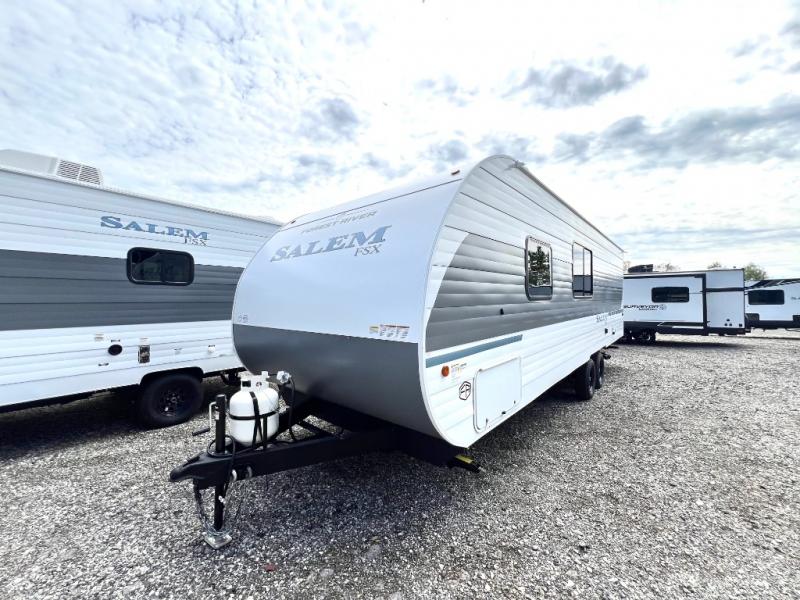 The Forest River Salem FSX travel trailers and toy hauler travel trailers are ultra comfortable and lightweight, perfect for first time or seasoned campers alike! You will love how easy it will be to relax with residential features that will make your space feel just like home, and the durable construction means you can enjoy your RV for years to come. There are a wide variety of floorplans to choose from, including couple's trailers, bunk models, and toy haulers, all with full bath and kitchen amenities and plenty of storage for all your gear!