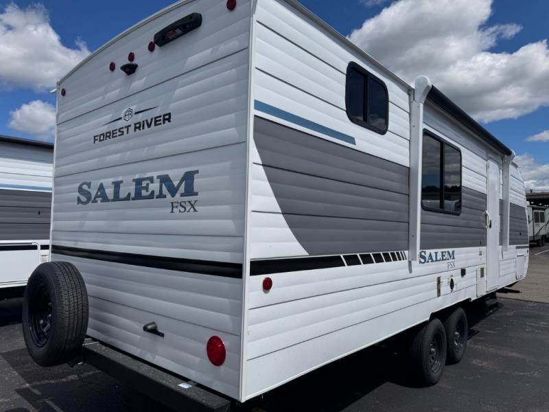 The Forest River Salem FSX travel trailers and toy hauler travel trailers are ultra comfortable and lightweight, perfect for first time or seasoned campers alike! You will love how easy it will be to relax with residential features that will make your space feel just like home, and the durable construction means you can enjoy your RV for years to come. There are a wide variety of floorplans to choose from, including couple's trailers, bunk models, and toy haulers, all with full bath and kitchen amenities and plenty of storage for all your gear!
