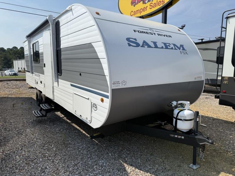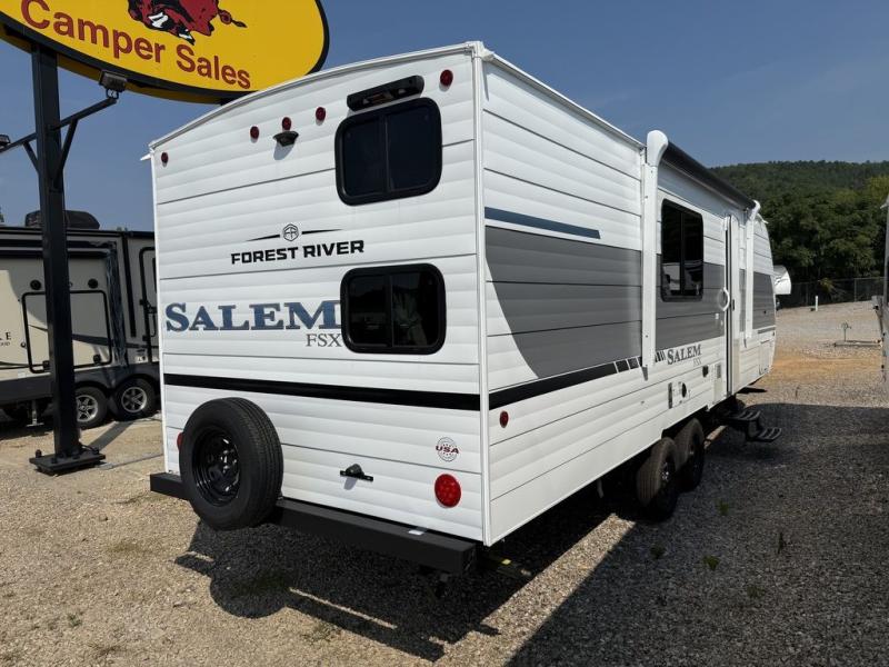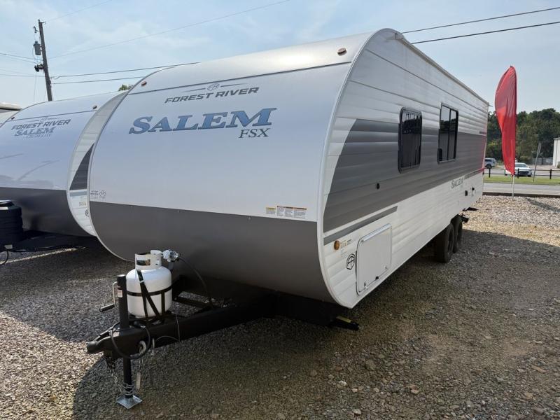 The Forest River Salem FSX travel trailers and toy hauler travel trailers are ultra comfortable and lightweight, perfect for first time or seasoned campers alike! You will love how easy it will be to relax with residential features that will make your space feel just like home, and the durable construction means you can enjoy your RV for years to come. There are a wide variety of floorplans to choose from, including couple's trailers, bunk models, and toy haulers, all with full bath and kitchen amenities and plenty of storage for all your gear!