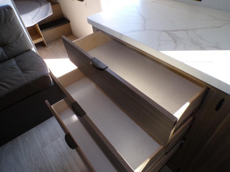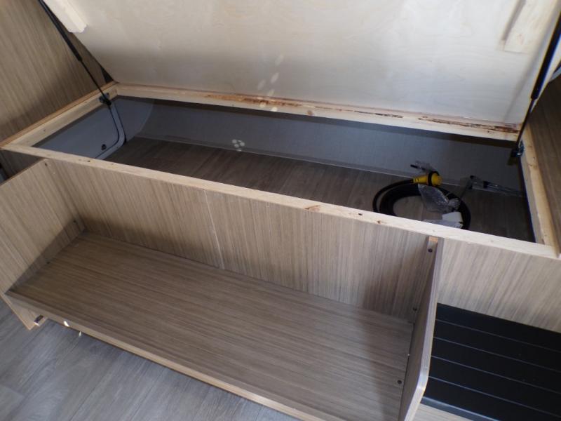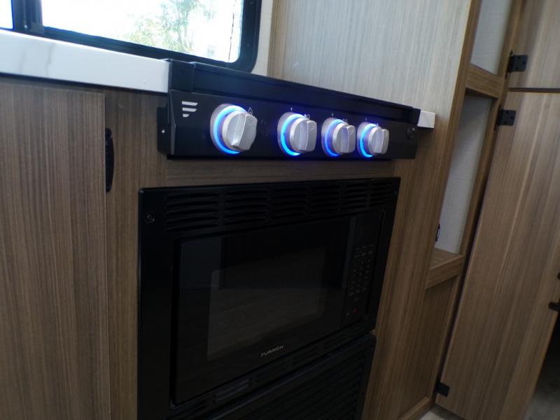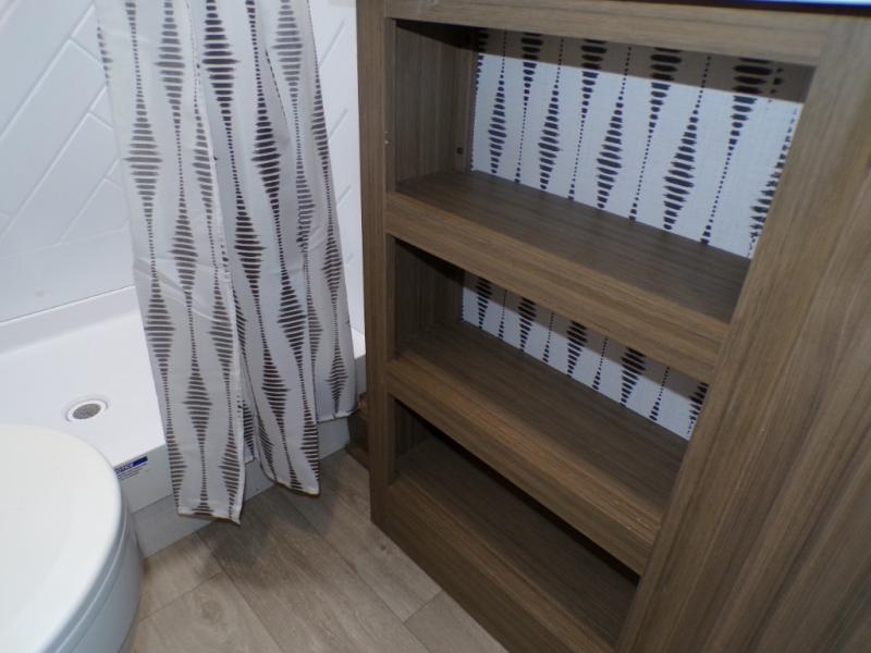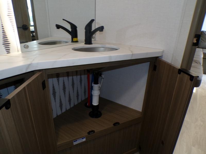 Camping is made easy in this travel trailer with more sleeping space and lots of comforts! The kids or your guests will enjoy the double-size bunks in the back, along with the full bath close by for easy nighttime use. You'll have the front private bedroom with a king bed all to yourselves, and there are dual bedroom wardrobes to keep your space neat and clean. Everyone can meet in the combined kitchen and living room to relax on the super U-lounge with a removable table while the chef of your group makes breakfast on the two burner cooktop. There is also a microwave oven for quick meals, plus a pantry and refrigerator for food storage!