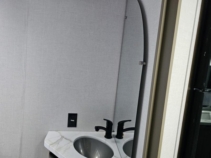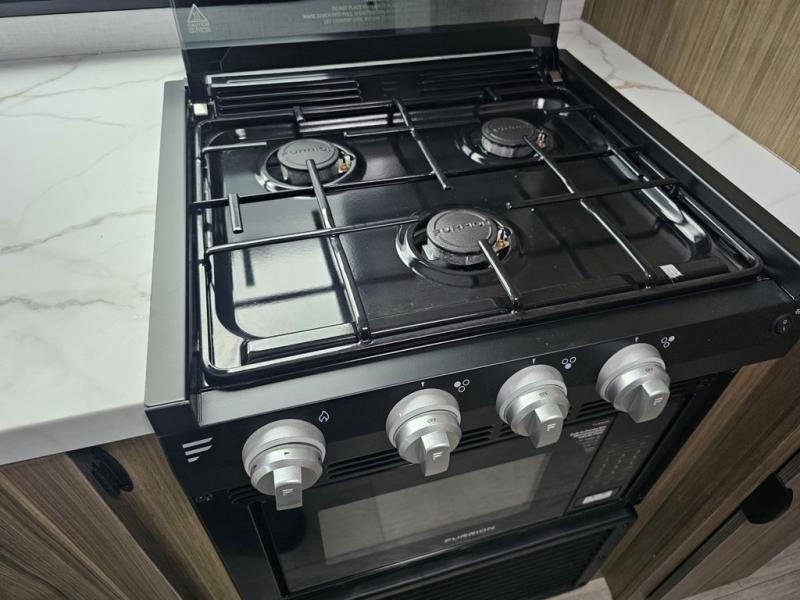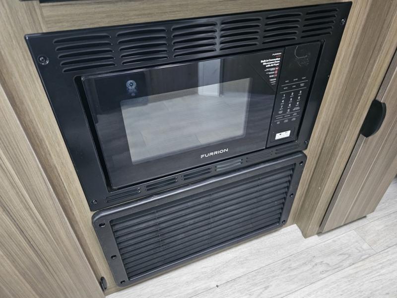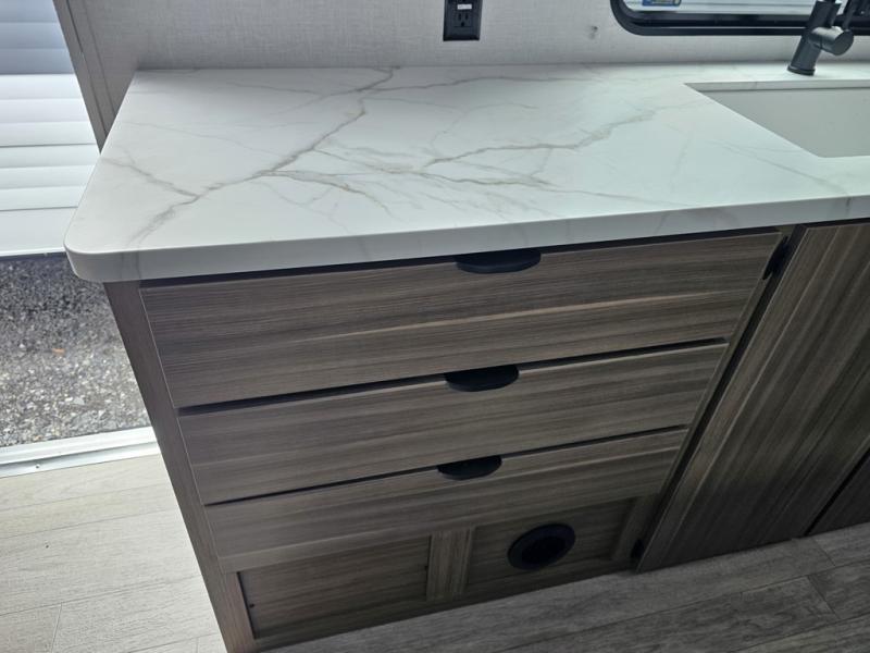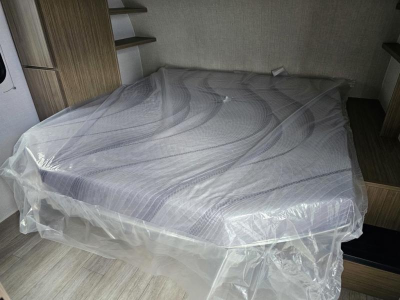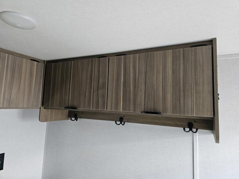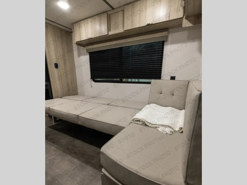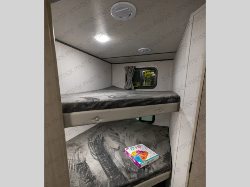 Camping is made easy in this travel trailer with more sleeping space and lots of comforts! The kids or your guests will enjoy the double-size bunks in the back, along with the full bath close by for easy nighttime use. You'll have the front private bedroom with a king bed all to yourselves, and there are dual bedroom wardrobes to keep your space neat and clean. Everyone can meet in the combined kitchen and living room to relax on the super U-lounge with a removable table while the chef of your group makes breakfast on the two burner cooktop. There is also a microwave oven for quick meals, plus a pantry and refrigerator for food storage!