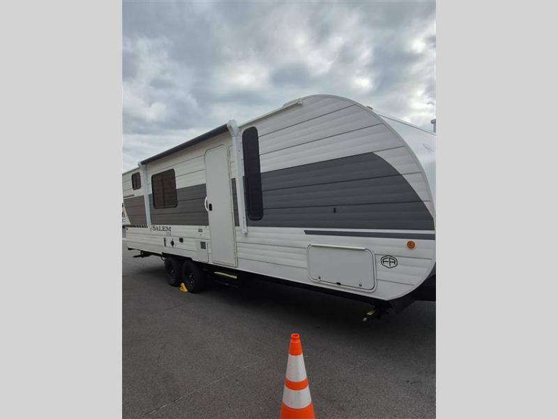The Forest River Salem FSX travel trailers and toy hauler travel trailers are ultra comfortable and lightweight, perfect for first time or seasoned campers alike! You will love how easy it will be to relax with residential features that will make your space feel just like home, and the durable construction means you can enjoy your RV for years to come. There are a wide variety of floorplans to choose from, including couple's trailers, bunk models, and toy haulers, all with full bath and kitchen amenities and plenty of storage for all your gear!