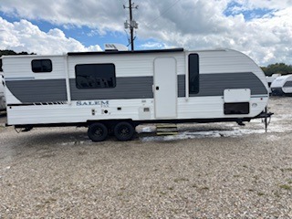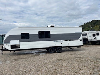 The Forest River Salem FSX travel trailers and toy hauler travel trailers are ultra comfortable and lightweight, perfect for first time or seasoned campers alike! You will love how easy it will be to relax with residential features that will make your space feel just like home, and the durable construction means you can enjoy your RV for years to come. There are a wide variety of floorplans to choose from, including couple's trailers, bunk models, and toy haulers, all with full bath and kitchen amenities and plenty of storage for all your gear!